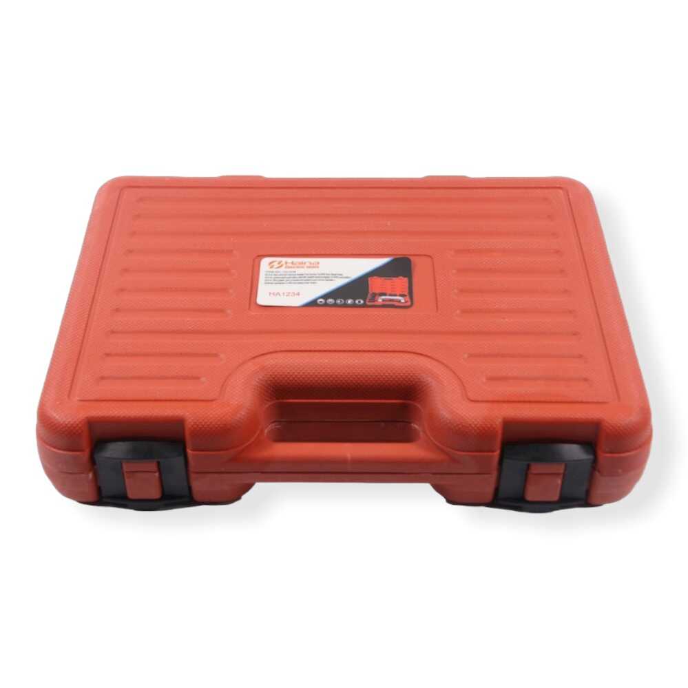 * 1 db extra erős C-keretes prés, 1 db menetes orsó, 3 db különböző méretű fogadó hüvely (2-1/4″ L, 1-3/4″ L, 1-3/4″ L), beszerelő és eltávolító adapterek, valamint egy strapabíró, rendezett tárolókoffer.