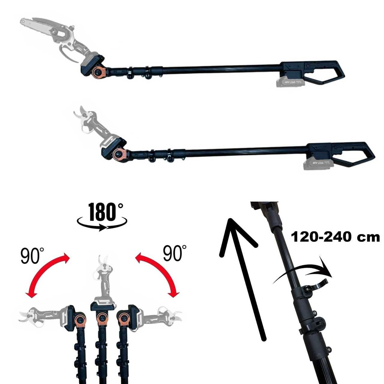 - Biztonság a magasban: A 110-200 cm-es teleszkópos kar lehetővé teszi, hogy elérd a legmagasabb ágakat is, anélkül, hogy létrára lenne szükséged.