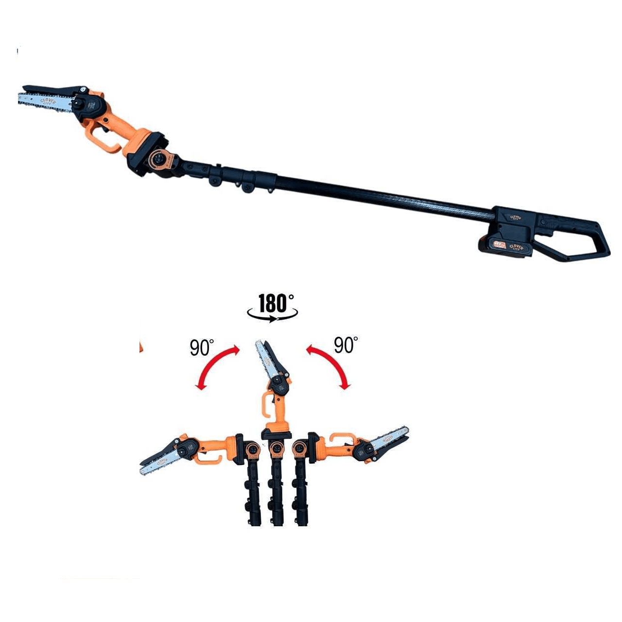 - Kényelem és erő: A láncfűrész könnyű súlya és ergonomikus kialakítása, a toldókar állítható dőlésszögével és szivacsos markolatával kombinálva minimálisra csökkenti a fizikai megterhelést.