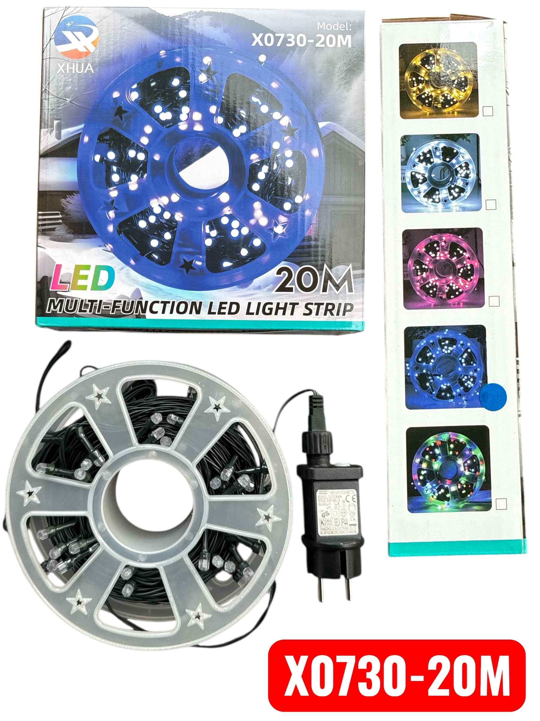 1x XHUA X0730-20M LED fényfüzér tápegységgel