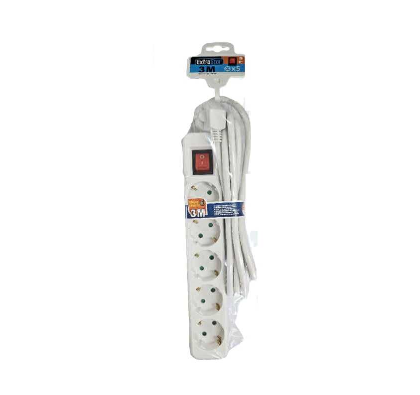 5-ös Hálózati Elosztó Kapcsolóval és 3 Méteres Kábellel (Gyermekvédelemmel)