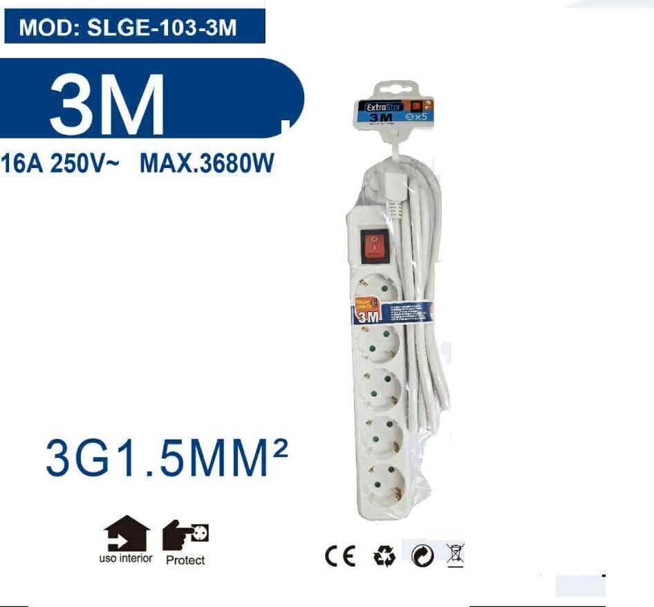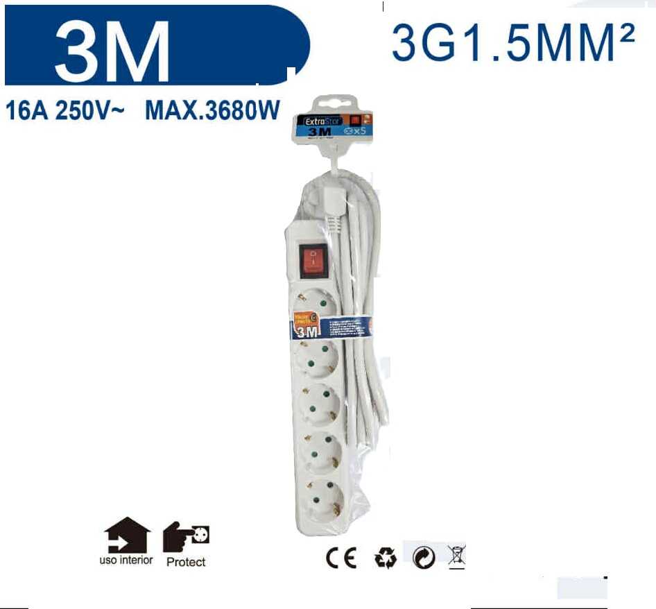 A termék öt darab, egyenként földelt és gyermekvédelemmel ellátott csatlakozóaljzattal rendelkezik. A 3 méteres hálózati vezeték belső érkeresztmetszete 3G 1.5 mm2, ami maximum 3680W összteljesítményig terhelhető. A beépített világító billenőkapcsoló azonnali visszajelzést ad a feszültség jelenlétéről.