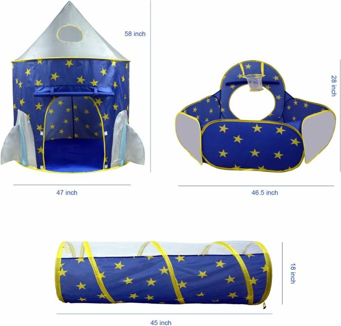 Tartalom: 2 db különböző formájú sátor, 1 db összekötő alagút, beépített kosárpalánk