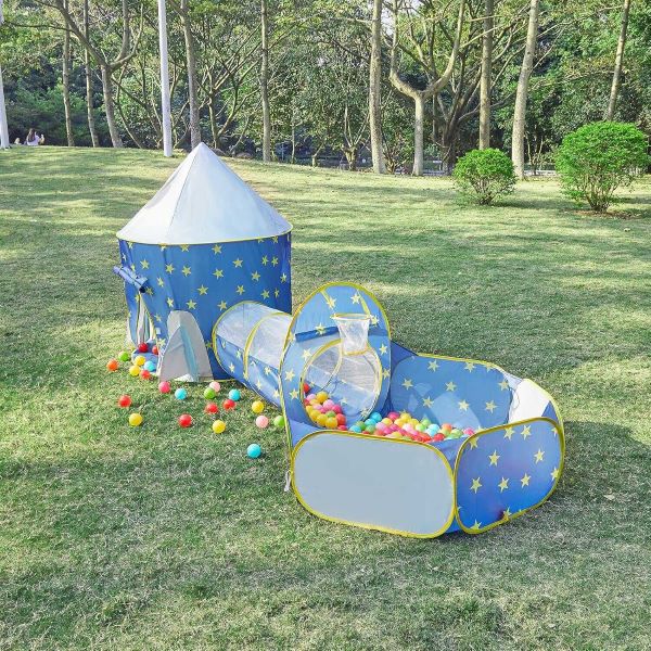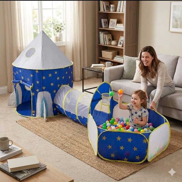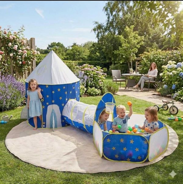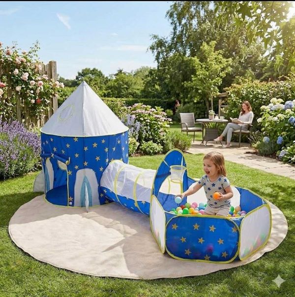 Komplex élmény: Három különböző játéktér egyben – sátrazás, alagútban kúszás és labdajátékok.