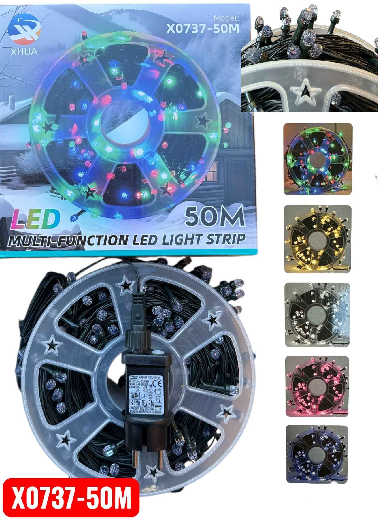 1x XHUA X0737-50M LED fényfüzér tápegységgel
