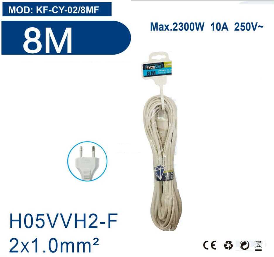 8 méteres Fehér Hálózati Hosszabbító Kábel (Lapos Euro-csatlakozóval)