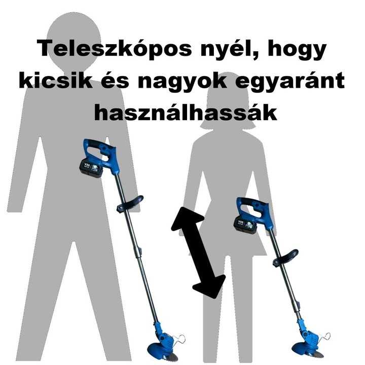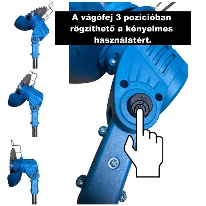 • Kényelem: Teleszkópos nyél és 3 pozícióban állítható vágófej