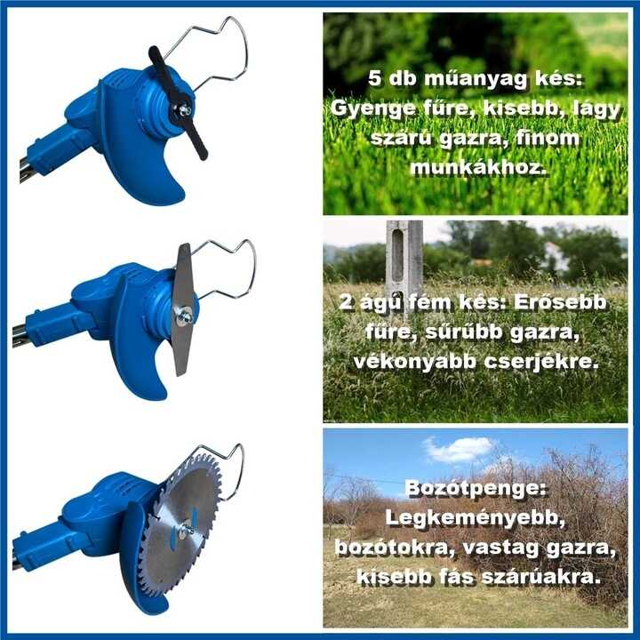 Ez a fűkasza a sokoldalúság bajnoka. A mellékelt tartozékkészletnek köszönhetően egyaránt alkalmas pázsitszegélyek precíz igazítására a műanyag késekkel, valamint az elhanyagoltabb, sűrűbb gyomos területek megtisztítására a fém vágótárcsa segítségével. Az állítható vágófej és a teleszkópos nyél biztosítja, hogy a bokrok alatt vagy a rézsűs oldalakon is ergonomikusan dolgozhasson.