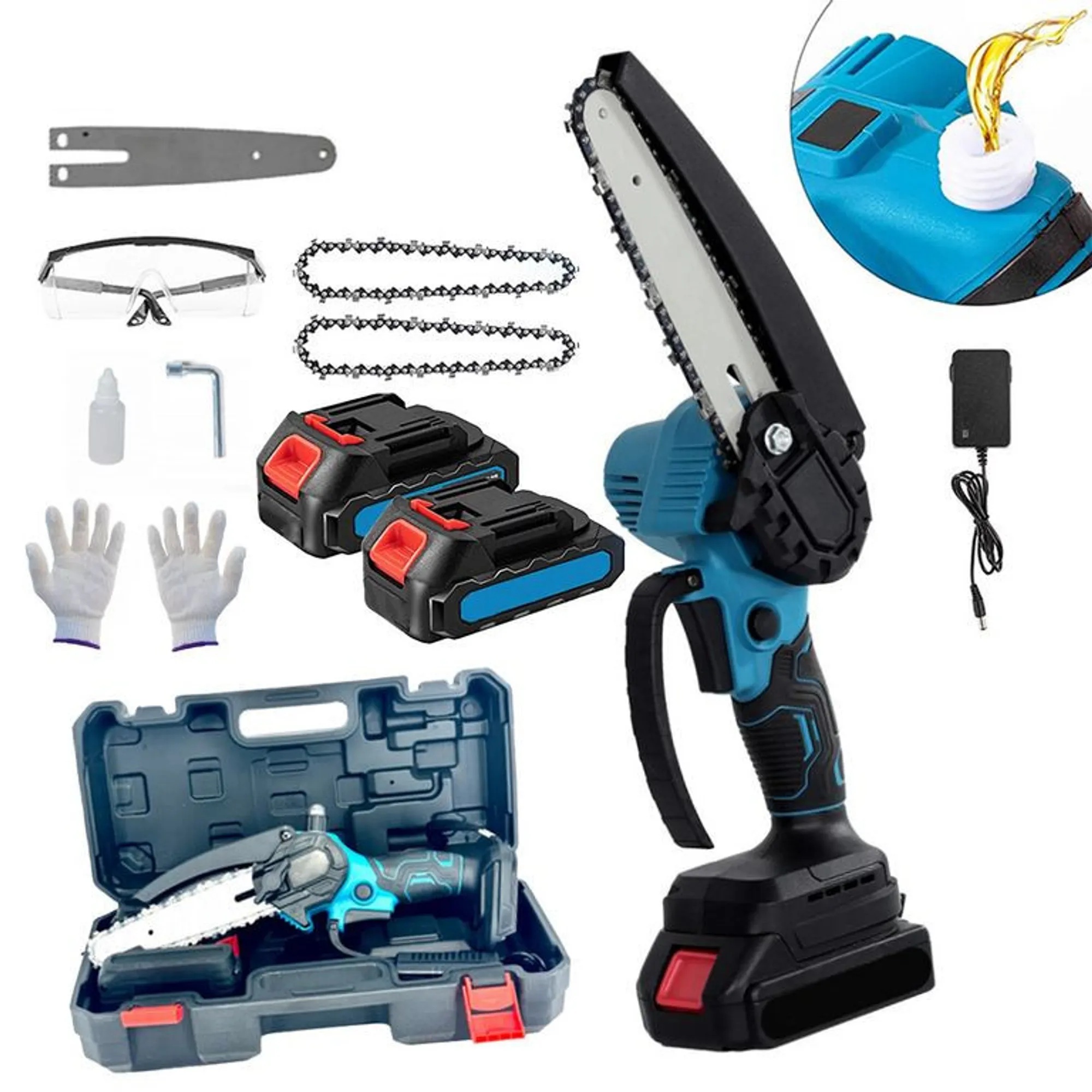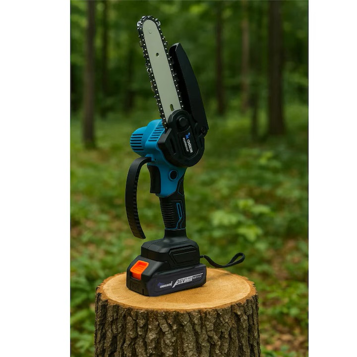 Ami azonnal kiemeli a versenytársak közül, az a beépített olajzó rendszer, amely a vágás közben folyamatosan keni a láncot, így megelőzve a kopást és a túlmelegedést. A csomagban 2 darab 68V-os nagykapacitású akkumulátort talál, így megállás nélkül dolgozhat: amíg az egyik akkumulátorral vág, a másik töltődhet. A képeken jól látható a kék-fekete modern dizájn, a biztonsági védőburkolat és a csúszásmentes markolat, amely maximális kontrollt biztosít munka közben.