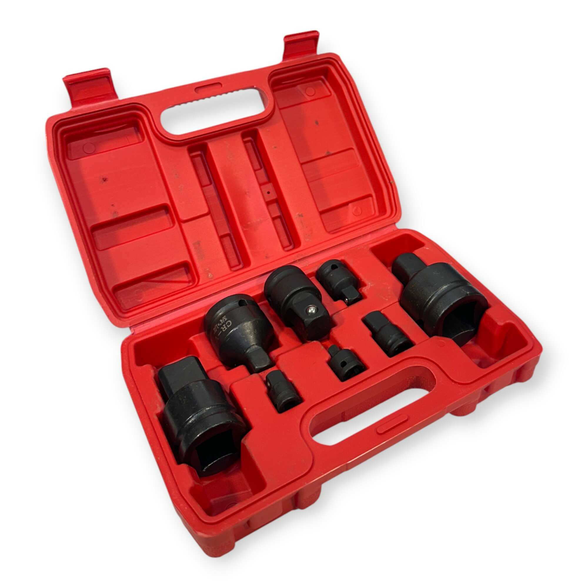 * 8 db Átalakító adapter (méretek: 1/4″›3/8″, 3/8″›1/4″, 3/8″›1/2″, 1/2″›3/8″, 1/2″›3/4″, 3/4″›1/2″, 3/4″›1″, 1″›3/4″)