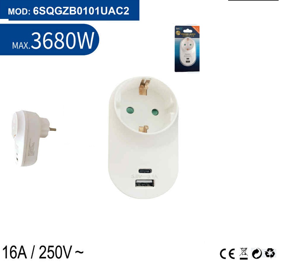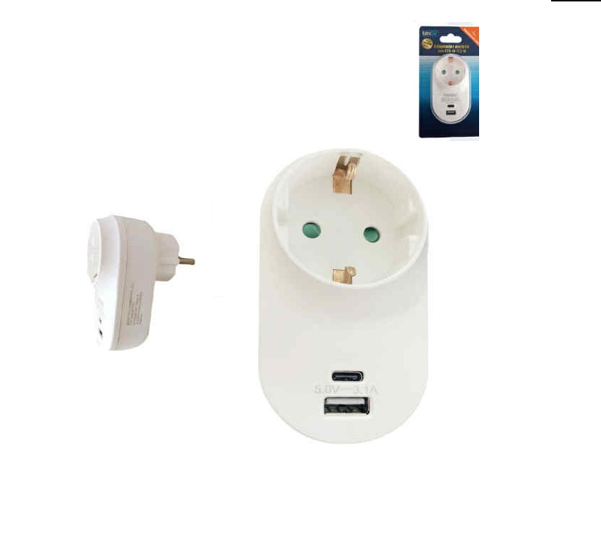 Típus: ADAPTADOR alemán con USB /A+C 3.1A