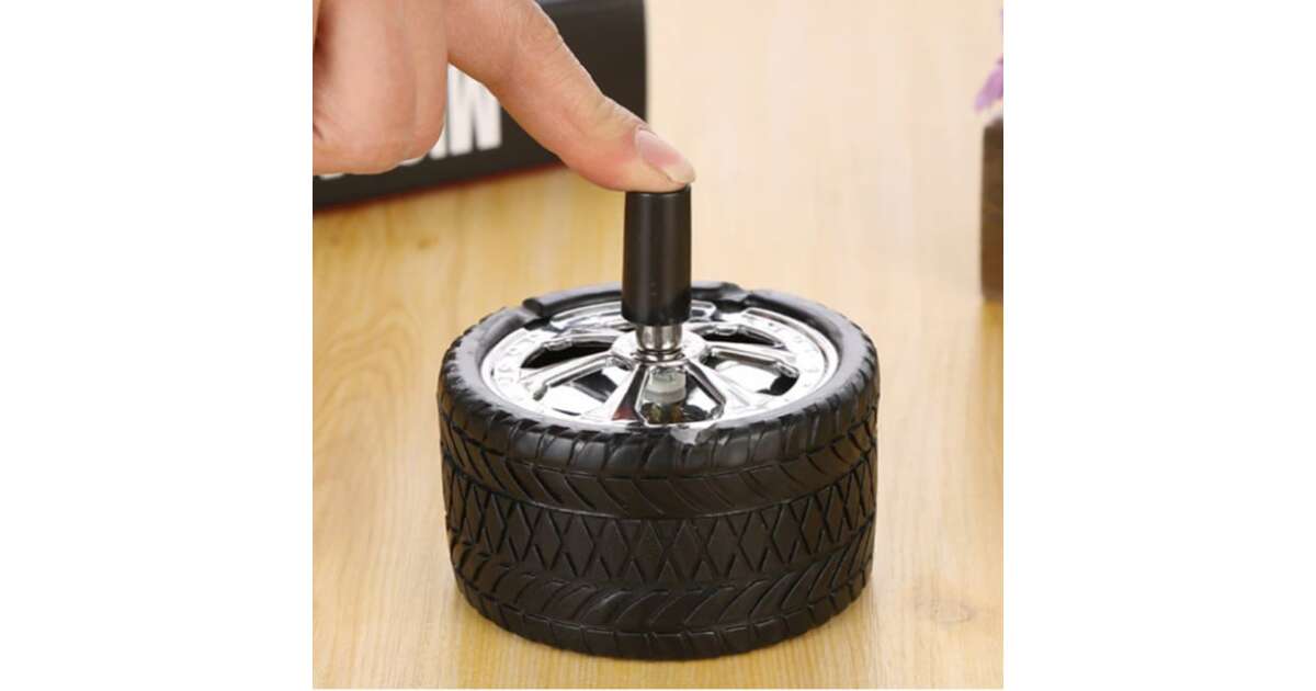 Az kerék formájú pörgős hamutartó egy kreatív autó és stílusos megoldás a hamu és cigaretta csikkek tárolására. Ezt az egyedülálló hamutartó, hanem látványos dizájnja is kiemeli, így egyaránt alkalmas otthoni és irodai környezetben, valamint kültéren is.