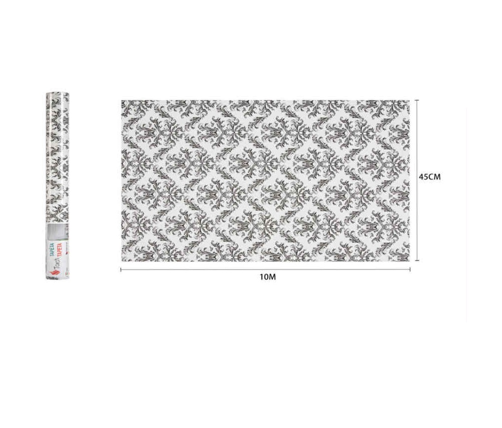 Barokk Mintás Szürke-Fehér Elegáns Öntapadós Tapéta 45cm x 10m – Torch
