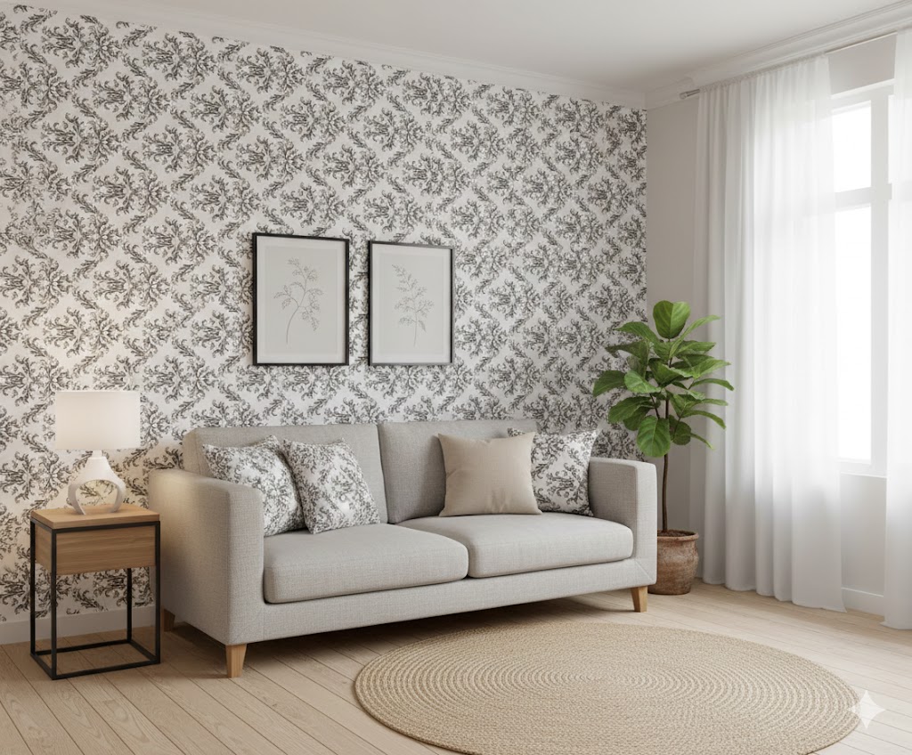 „Barokk Mintás Szürke-Fehér Elegáns Öntapadós Tapéta 45cm x 10m – Torch” értékelése elsőként