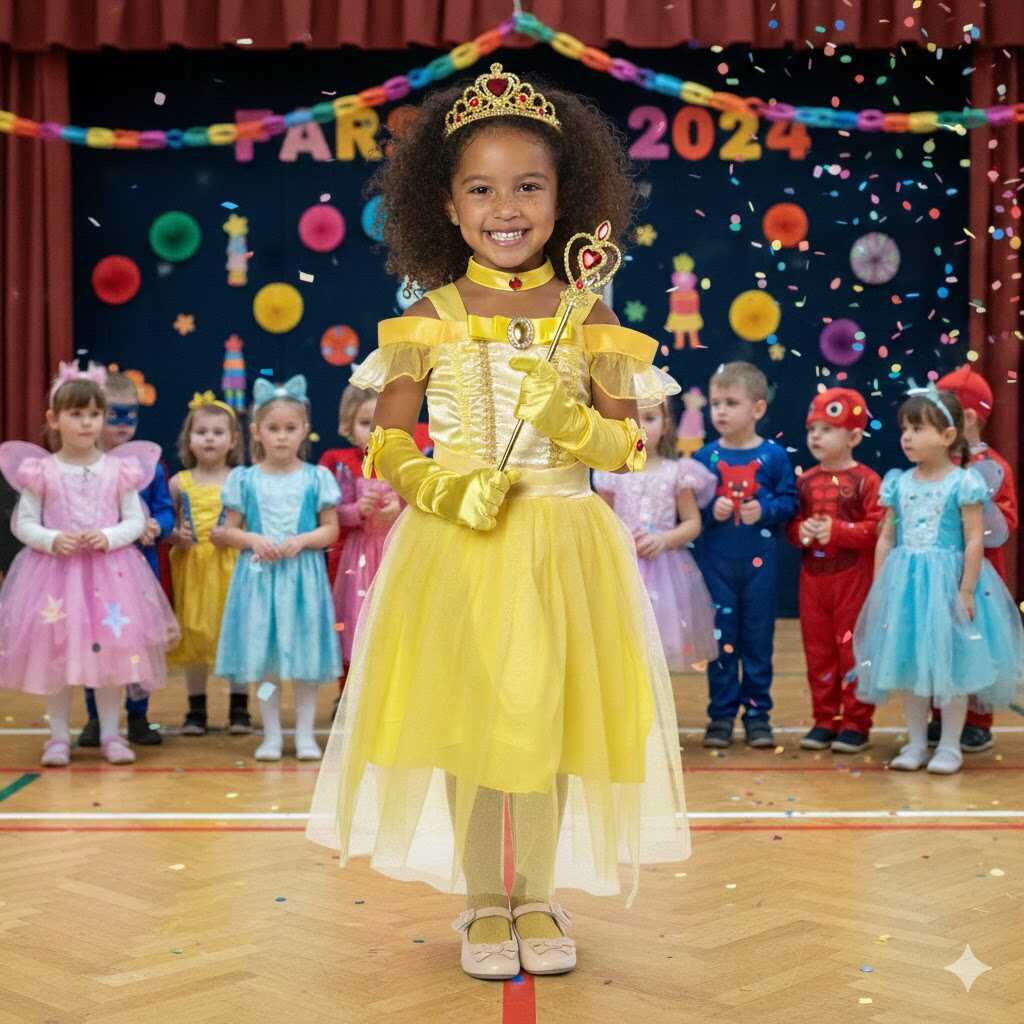 Váltsd valóra gyermeked legszebb álmait, és engedd, hogy a bátor és kedves Belle hercegnő bőrébe bújjon! Ez az ikonikus napsárga ruha minden kislányt elvarázsol, aki szereti a klasszikus mesevilágot. A gondosan kidolgozott részletek és a csillogó elemek gondoskodnak arról, hogy viselője egy valódi királyi kastély báltermében érezhesse magát.