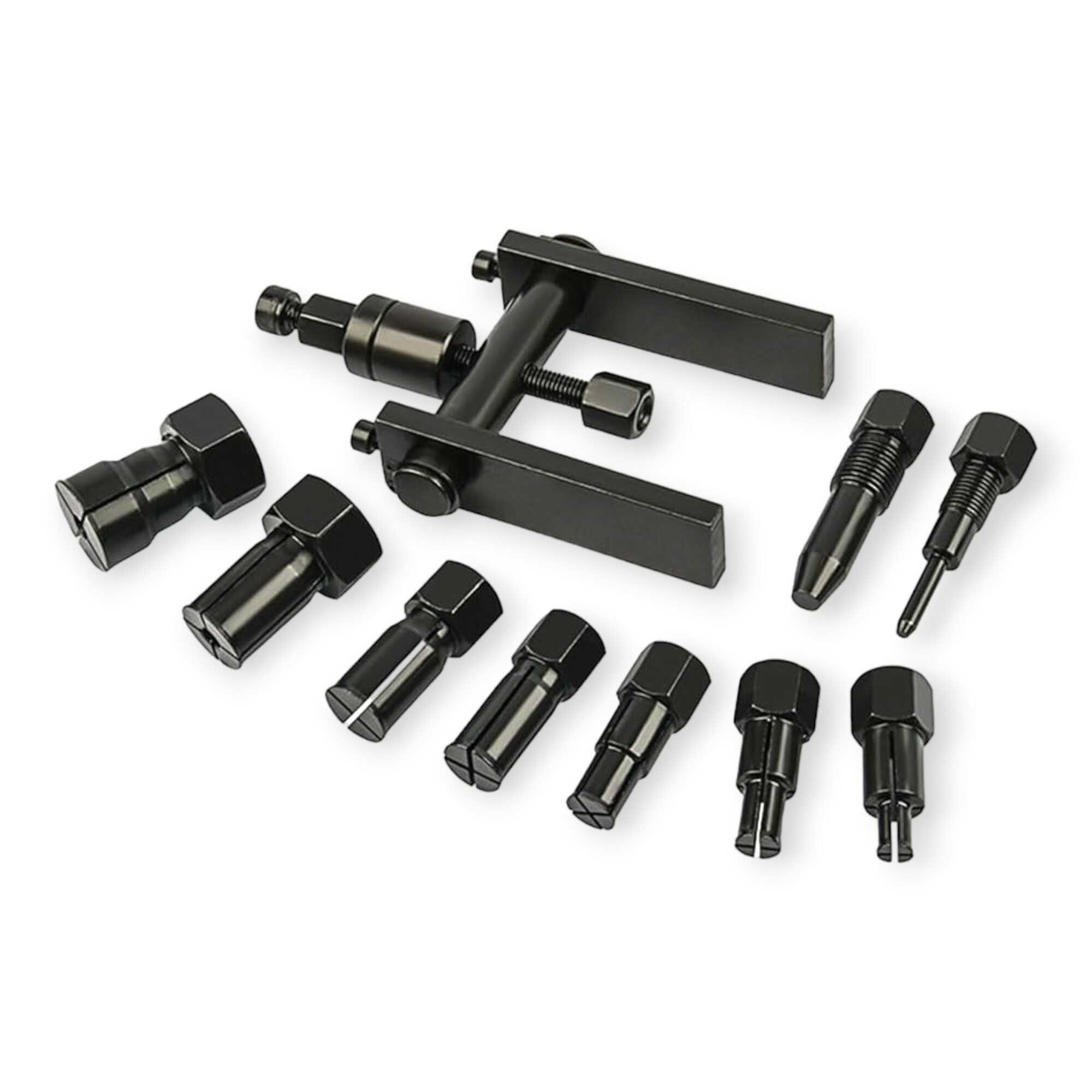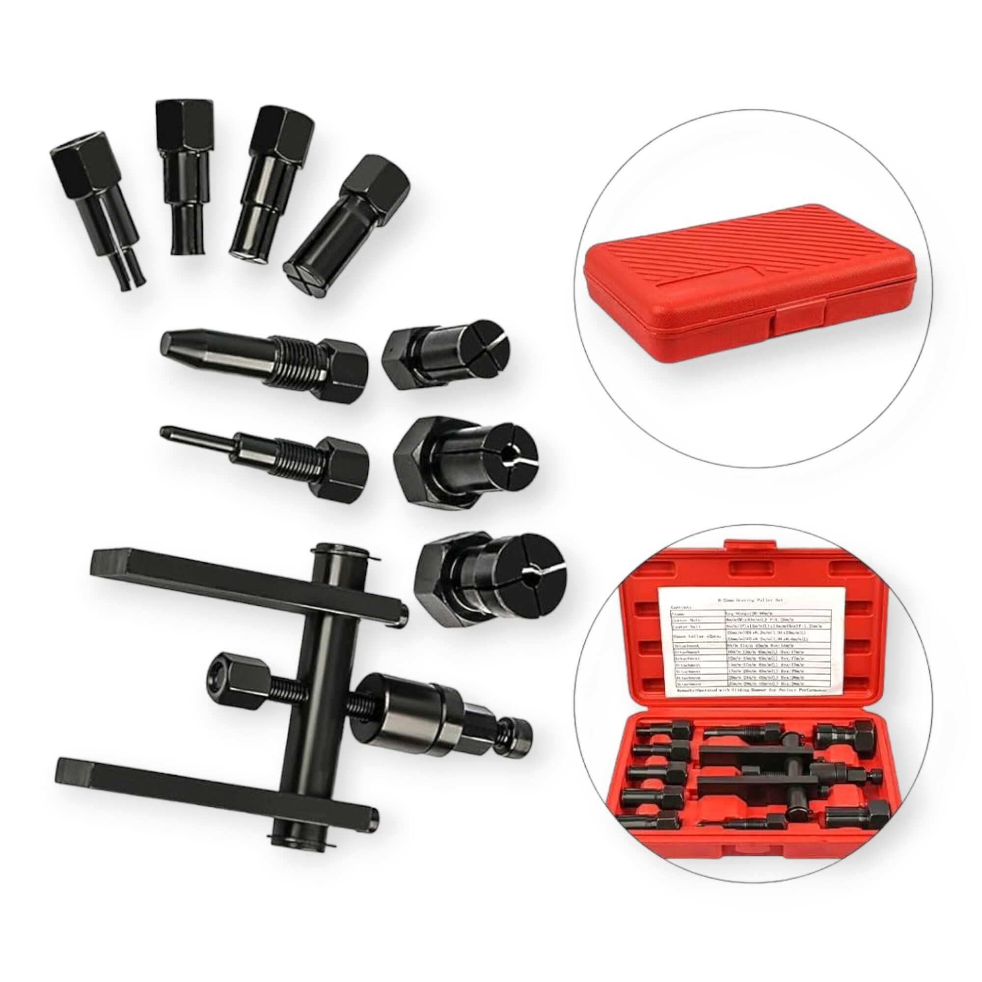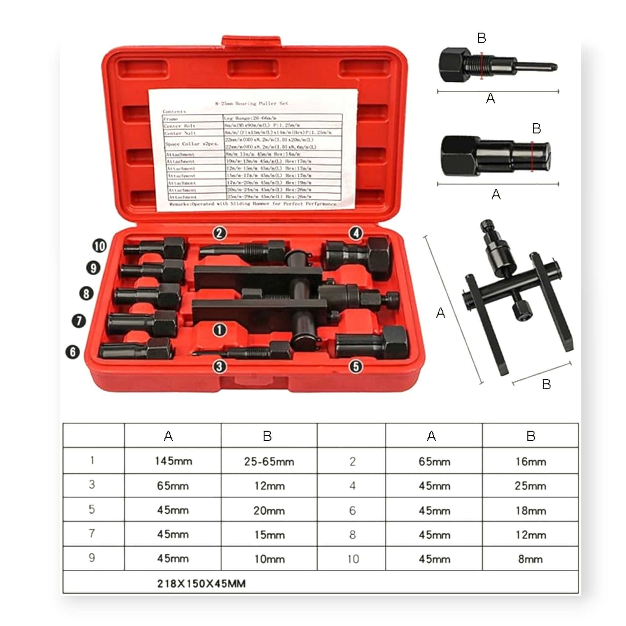 Ez a professzionális, 5 darabból álló készlet kifejezetten a belső fészekben elhelyezkedő, vakfuratos csapágyak hatékony és sérülésmentes eltávolítására szolgál. A készlet lelke egy masszív csúszókalapács, amely irányított ütőerőt biztosít a beszorult alkatrészek kihúzásához. A négy különböző méretű, táguló patron (94 mm hosszúságban) széles körű alkalmazhatóságot tesz lehetővé 10 mm és 32 mm közötti belső átmérőkhöz. A szerszámok nagy szilárdságú, edzett króm-vanádium (Cr-V) acélból készültek, így ellenállnak a nagy mechanikai igénybevételnek és hosszú élettartamot garantálnak. A készlet ideális választás olyan helyzetekben, ahol a hagyományos lehúzók nem férnek hozzá a munkadarabhoz. A teljes felszerelés egy tartós, rendszerezett belsővel rendelkező műanyag kofferben érkezik, amely védi a szerszámokat és megkönnyíti a szállítást.