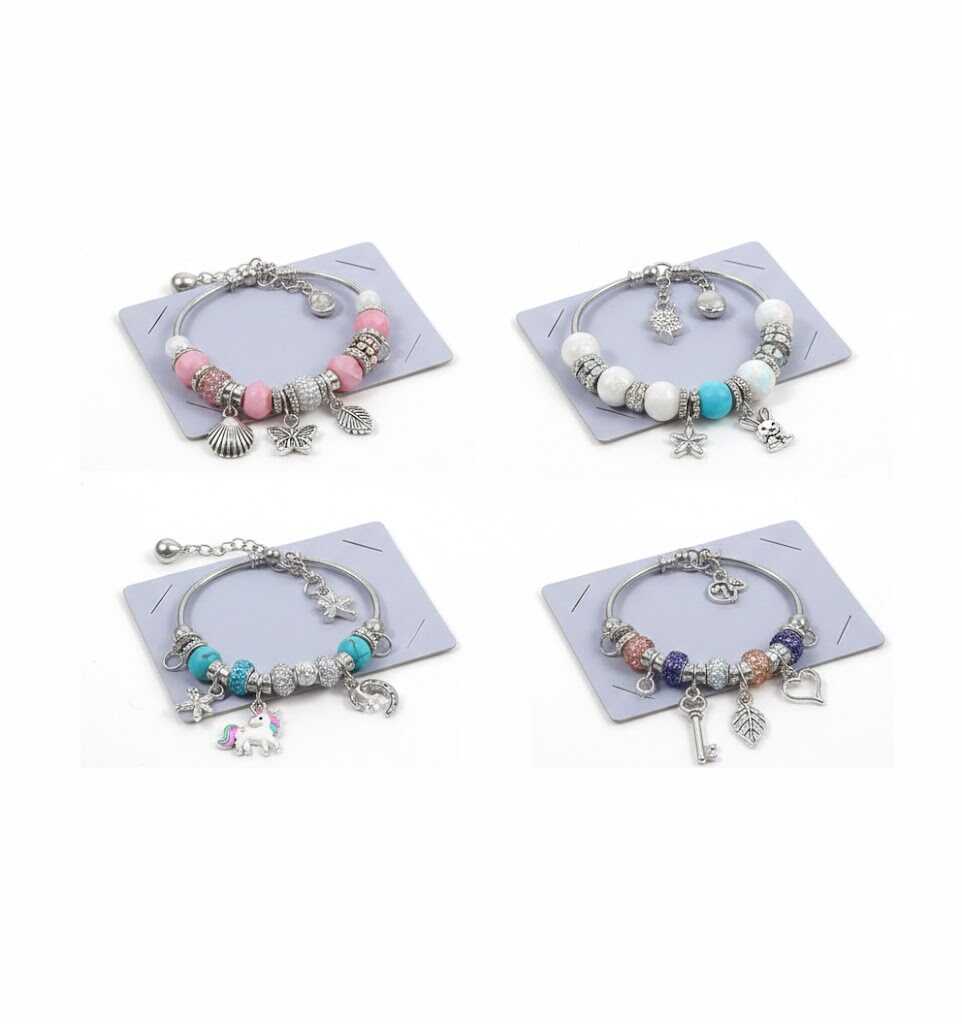 Különleges charmok: A készletekben olyan kedves figurák találhatók, mint a mesebeli unikornis, tengeri kagyló, kulcs, pillangó, nyuszi vagy éppen egy szerencsehozó hold.
