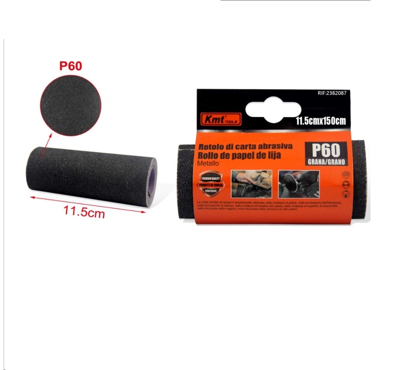 Csiszolópapír tekercs 11,5 cm x 150 cm, P60 szemcsézet, fémhez és fához – Kmt Tools