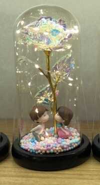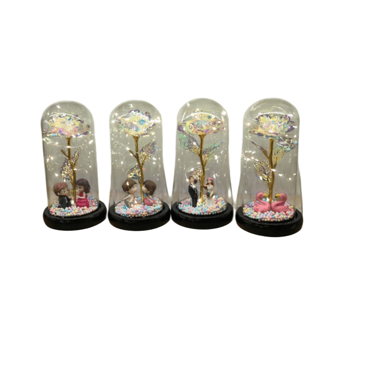 Dekorációs üveg rózsa kupolában választható figurákkal és világítással