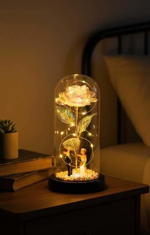 Galaxis Örök Rózsa Üvegkupolában, LED Világítással és Választható Figurákkal