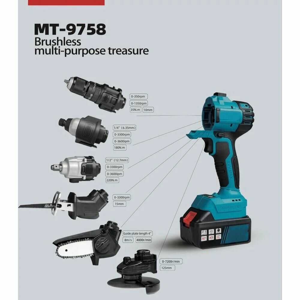 - Különböző fejek és tartozékok a funkciókhoz