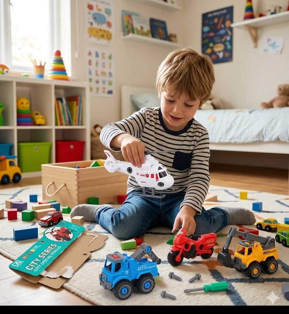 Finommotorika: A csavarozás és az elemek pontos illesztése kiválóan fejleszti a kézügyességet és a koncentrációt.