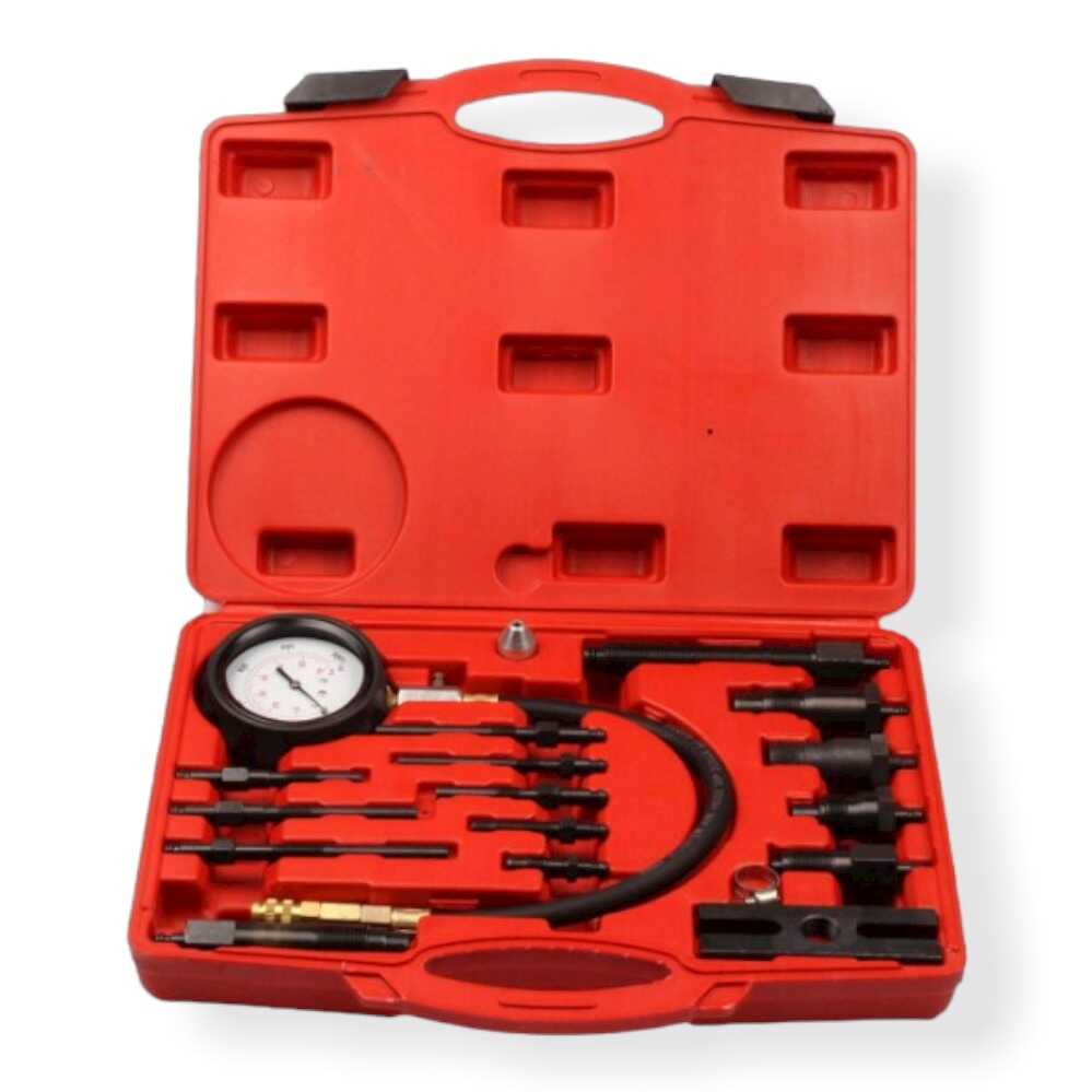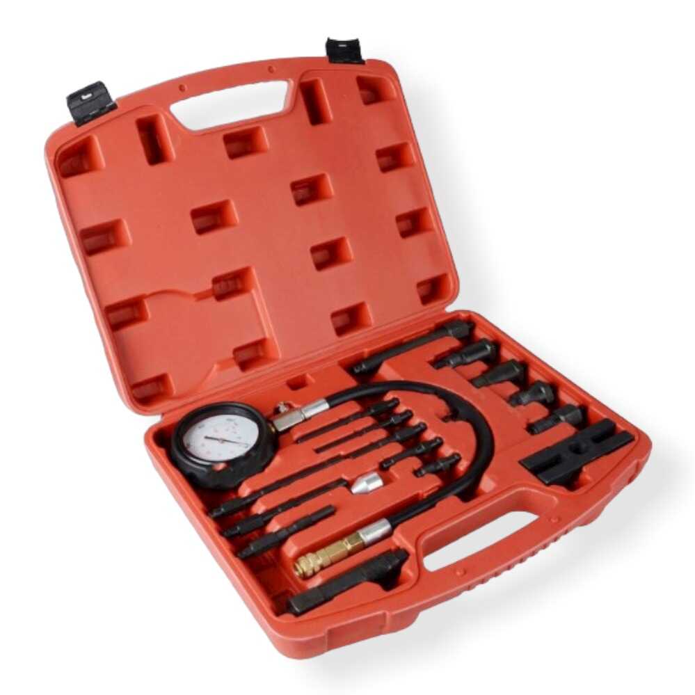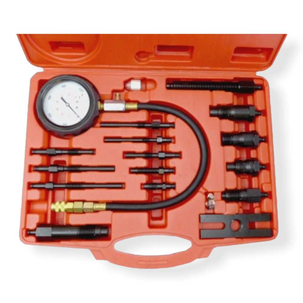 Ez a 17 darabból álló, professzionális diagnosztikai szerszámkészlet a dízelmotorok belső állapotának pontos felmérésére szolgál. A készlet segítségével precízen mérhető a hengerekben uralkodó kompressziós nyomás, amiből következtetni lehet a hengerkopásra, a szelepek záródására és a hengerfej tömítettségére. A műszer 0 és 70 bar közötti mérési tartománya lefedi a legtöbb személygépkocsi, teherautó, busz és munkagép dízelmotorjának diagnosztikai igényeit. A készletben található 17 darab különböző menetű és kialakítású adapter széleskörű kompatibilitást biztosít számos autómárka és típus számára. A nagy átmérőjű, jól olvasható, gumírozott védőburkolattal ellátott mérőóra , valamint a rugalmas, nagy nyomásnak ellenálló tömlők gyors és megbízható diagnosztikát tesznek lehetővé. A teljes felszerelés egy tartós, rendszerezett belsővel rendelkező műanyag kofferben érkezik , amely védi a precíziós műszert a szállítás és tárolás során.