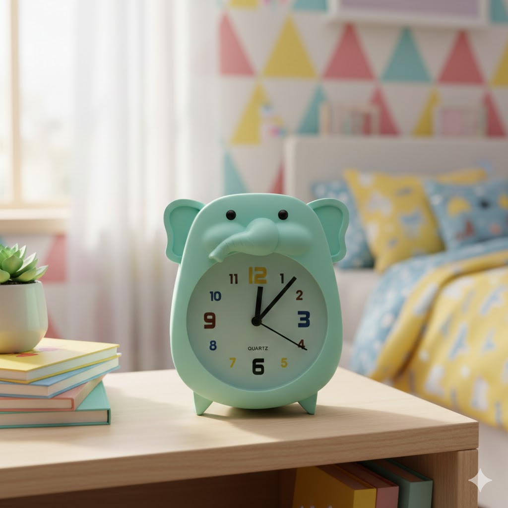 Ez a kedves menta színű elefántos ébresztőóra garantáltan mosolyt csal a gyermekek arcára minden reggel A játékos forma és a színes számjegyek segítenek a kicsiknek az idő ismeretének elsajátításában miközben a szoba legvidámabb díszévé válik