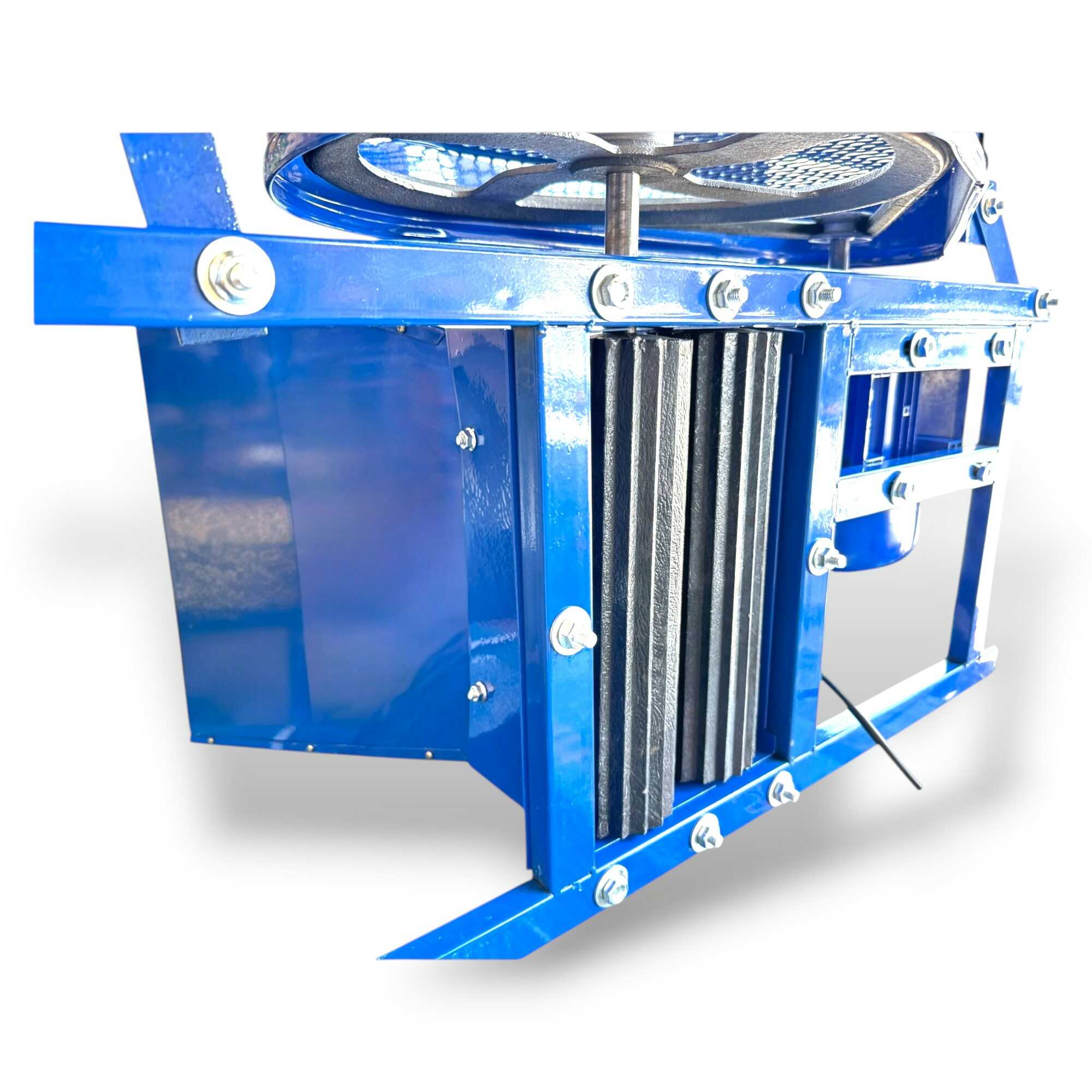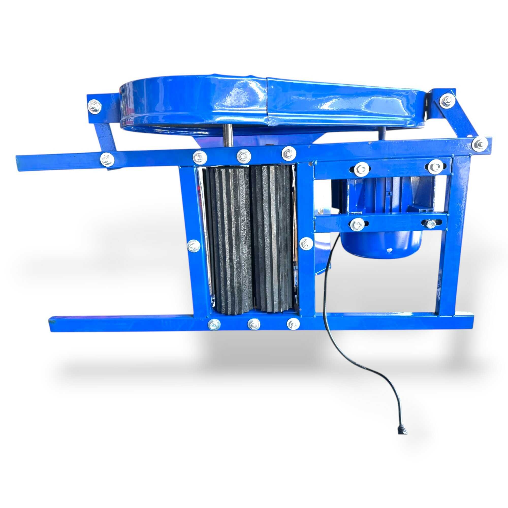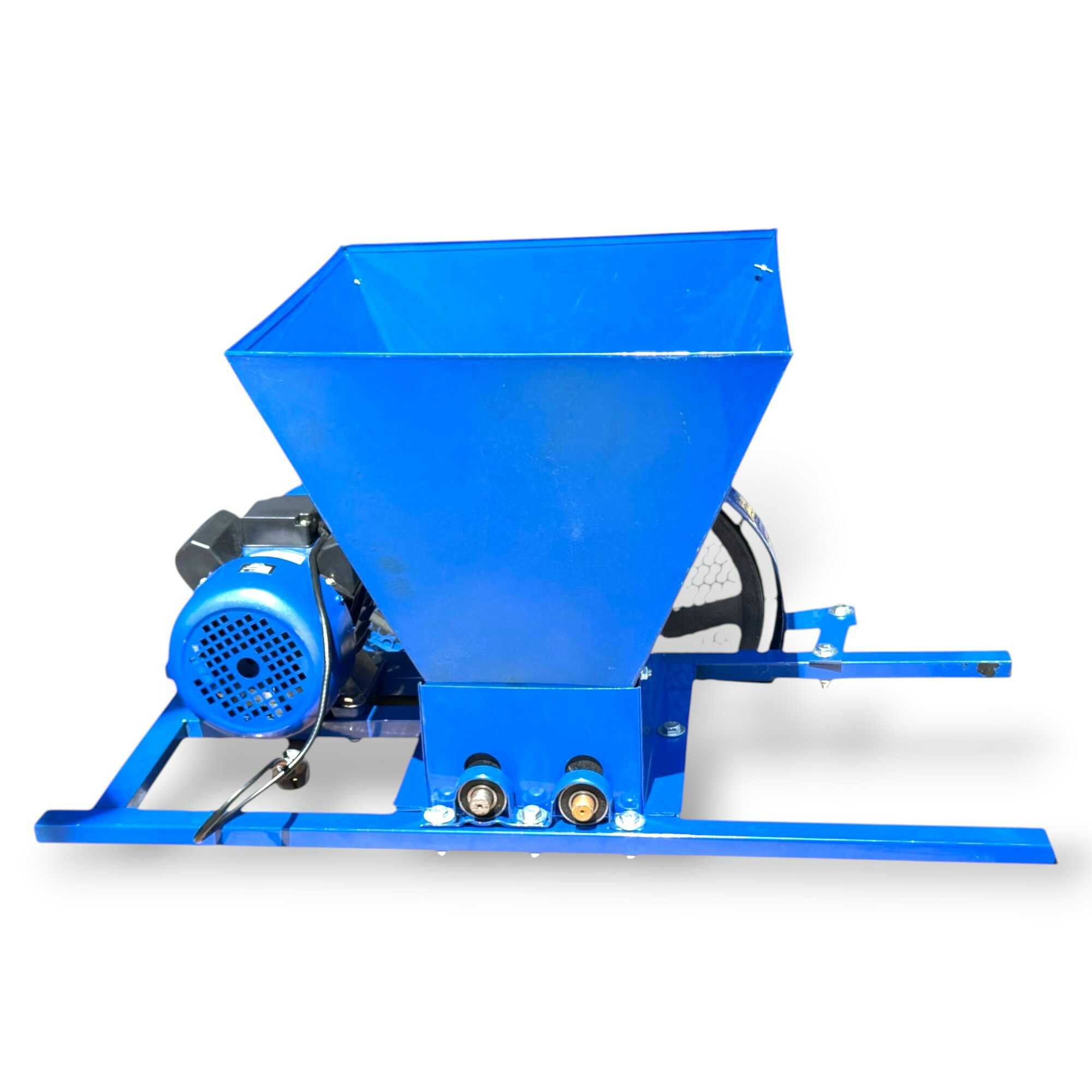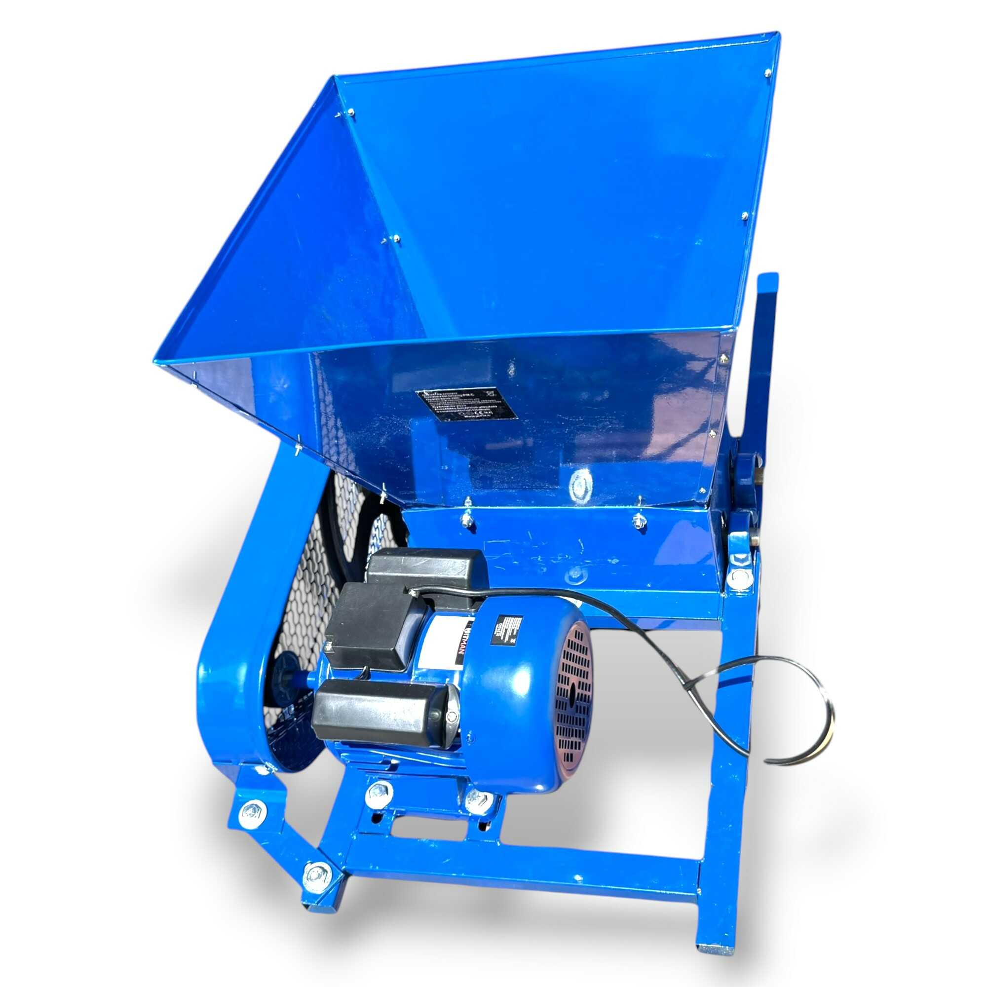 Ez a nagy teljesítményű, 2200 wattos elektromos daráló professzionális megoldást nyújt szőlő, alma, körte és egyéb bogyós gyümölcsök hatékony háztáji feldolgozásához. A berendezés lelke egy strapabíró elektromos motor, amely ékszíjas (hevederhajtásos) áttétellel mozgatja a darálómechanizmust, ami mechanikai védelmet és stabil erőátvitelt biztosít a sűrűbb alapanyagok esetén is. A nagyméretű garat rozsdamentes acélból készült, így ellenáll a gyümölcssavak maró hatásának és garantálja a higiénikus élelmiszer-feldolgozást. A masszív, acéllemezből hegesztett vázszerkezet és a csúszásmentes lábak maximális stabilitást nyújtanak üzem közben, míg a fémhálós védőrács gondoskodik a kezelő biztonságáról. Az eszköz nagy töltőkapacitása révén jelentősen felgyorsítja a mustkészítés és a gyümölcscefre előállításának folyamatát, minimalizálva a fizikai erőkifejtést. Ideális választás borászok és kerttulajdonosok számára, akik tartós, könnyen tisztítható és megbízható gépet keresnek a szezonális betakarítási munkákhoz.