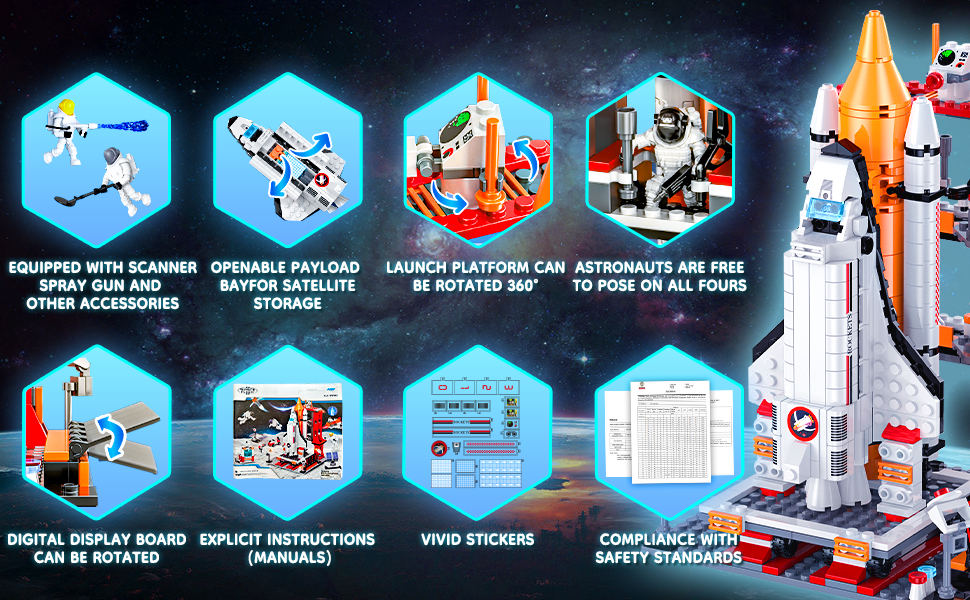 Ez a lenyűgöző, 1000 darabból álló építőjáték-készlet garantáltan órákig leköti a kis űrhajósok figyelmét! Építsd meg a részletesen kidolgozott űrsiklót, az indítóállást és a holdjárót, majd játszd el a küldetés minden izgalmas pillanatát!