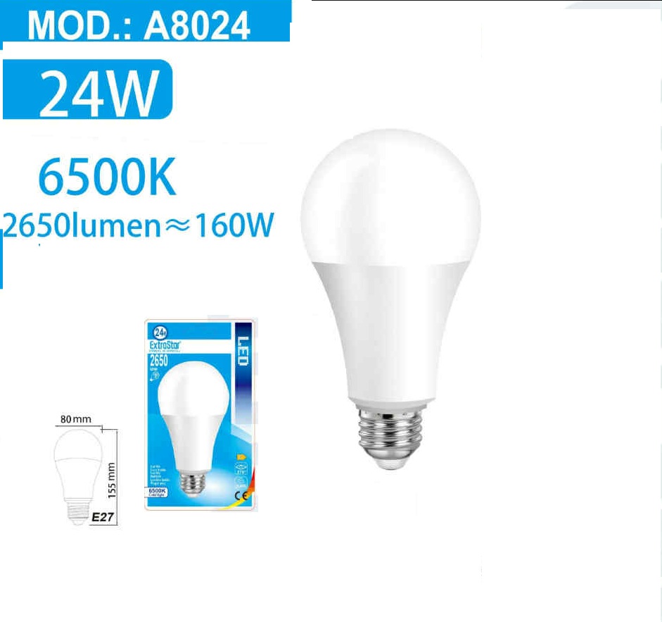 | 24W | 2650 lm | ~160W | A80 extra nagy gömb |
