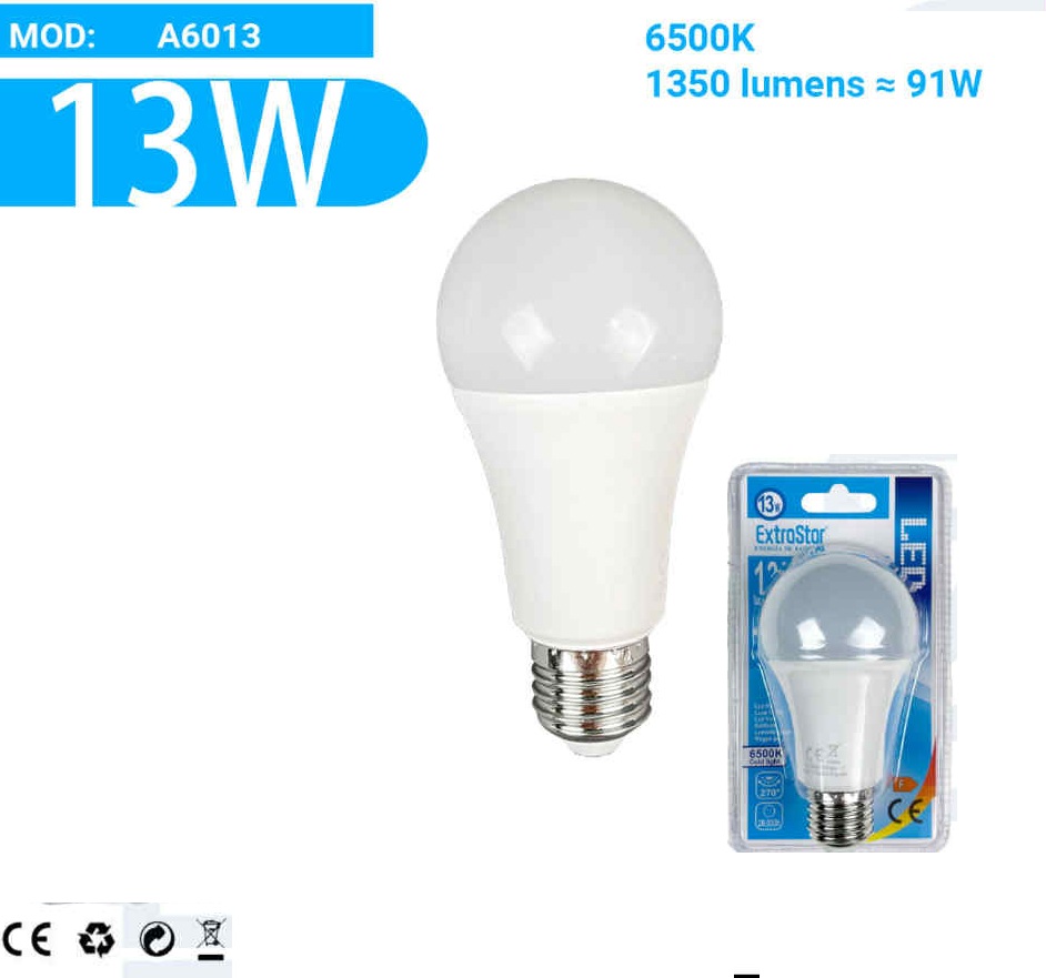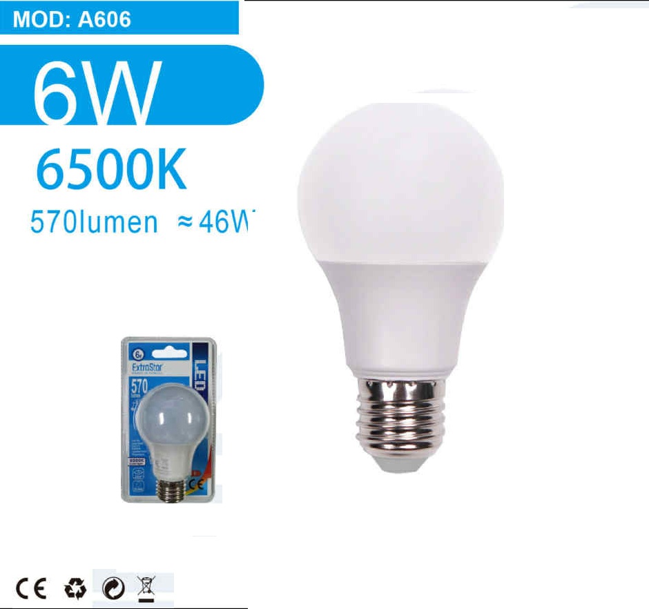 | 6W | 570 lm | ~46W | A60 gömb |