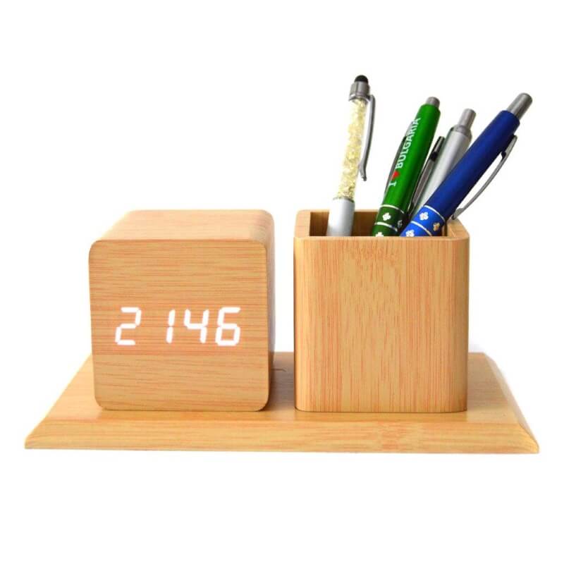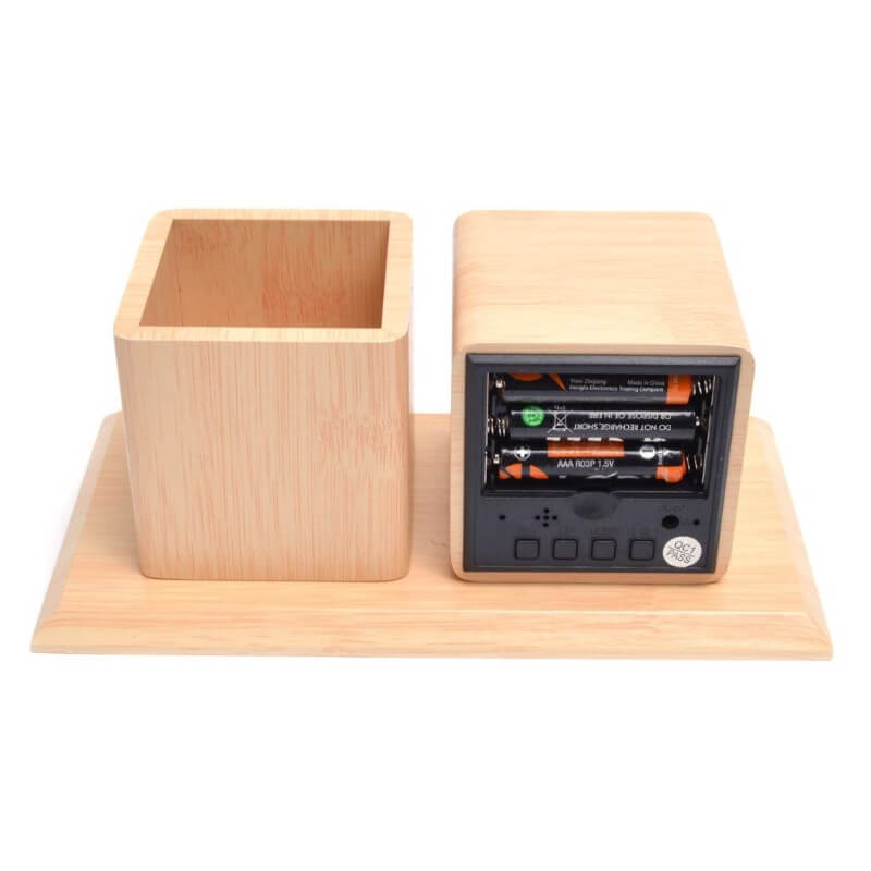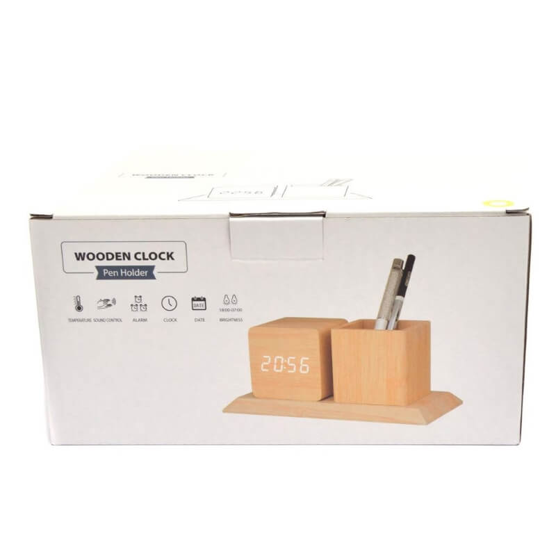 A Fa Asztali Óra és Tolltartó egy többfunkciós eszköz, amely nemcsak praktikus, hanem esztétikailag is vonzó. Az óra nem csupán az időt mutatja, hanem a hőmérséklet és a dátum információit is. Az ébresztők és az éjszakai üzemmód további kényelmi funkciókat kínálnak. Legyen az otthoni irodában vagy hálószobában, ez az eszköz egyaránt alkalmazkodik a modern életstílushoz és személyes ízlésedhez.