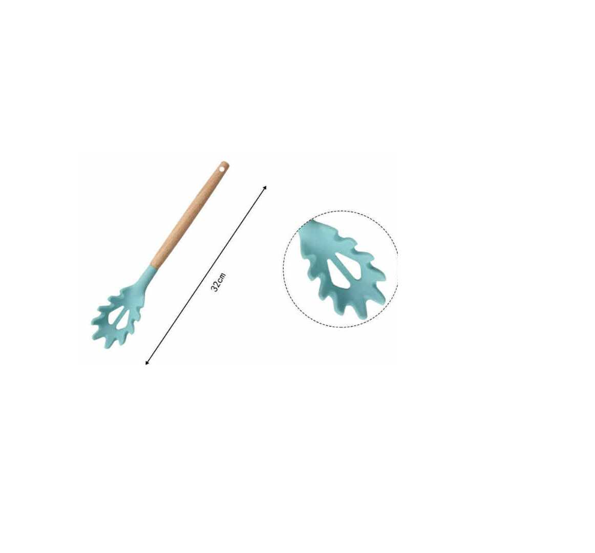 * 1 db Fa nyelű szilikon tésztakiszedő kanál.