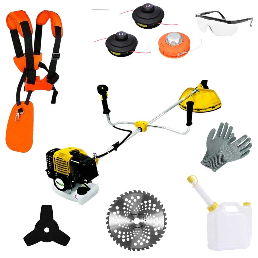 - Sokoldalú használat: A damilos és fém pengés vágórendszernek köszönhetően a fűnyírás és a bozótvágás is egyszerűen elvégezhető.