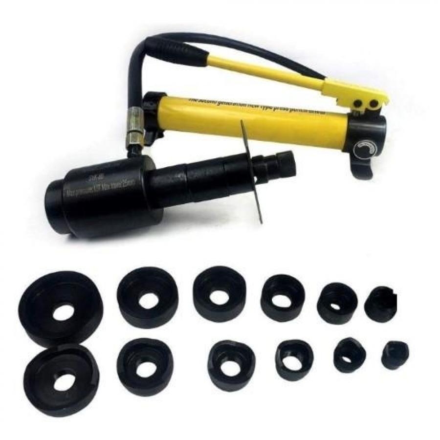 Ez a fémlyukasztó igazi erőgép! Az Aina 10 tonnás hidraulikus fémlyukasztója nem ismer lehetetlent. Akár 10 mm vastag acéllemezt is könnyedén kilyukaszt, a 13 részes készletnek köszönhetően pedig minden méretű lyukhoz megtalálod a megfelelő szerszámot.