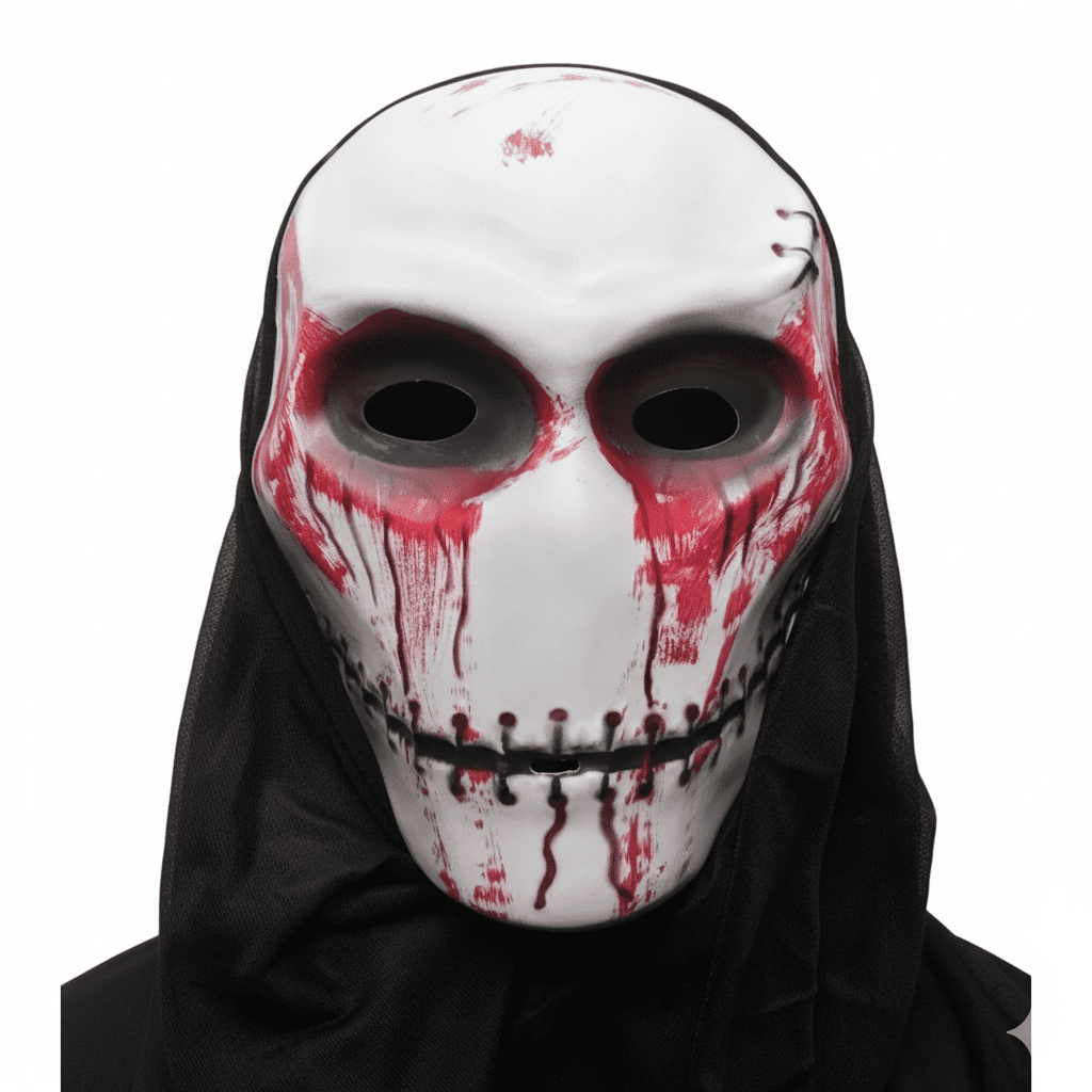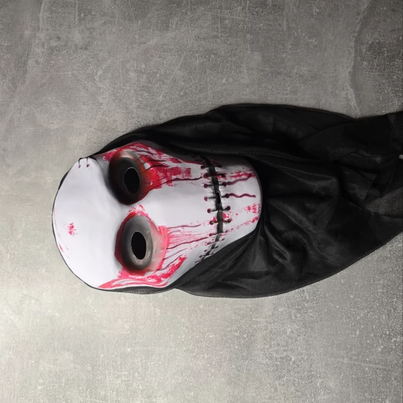 Ha szeretnél egy olyan maszkot, ami nem csupán elrejti az arcodat, hanem egy igazi horrorfilmes karakterré változtat, ez a véres, varrott szájú maszk a tökéletes választás.”