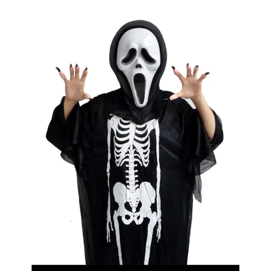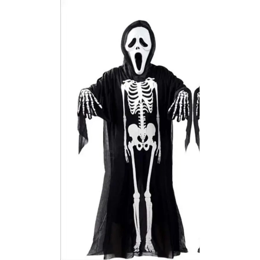Tökéletesítsd a csontváz vagy kaszás jelmezedet ezzel az élethű csontváz kesztyűvel! A fekete alapon fehér csontminták valósághűen követik a kéz anatómiáját, így a legapróbb mozdulatod is rémisztő látványt nyújt majd.