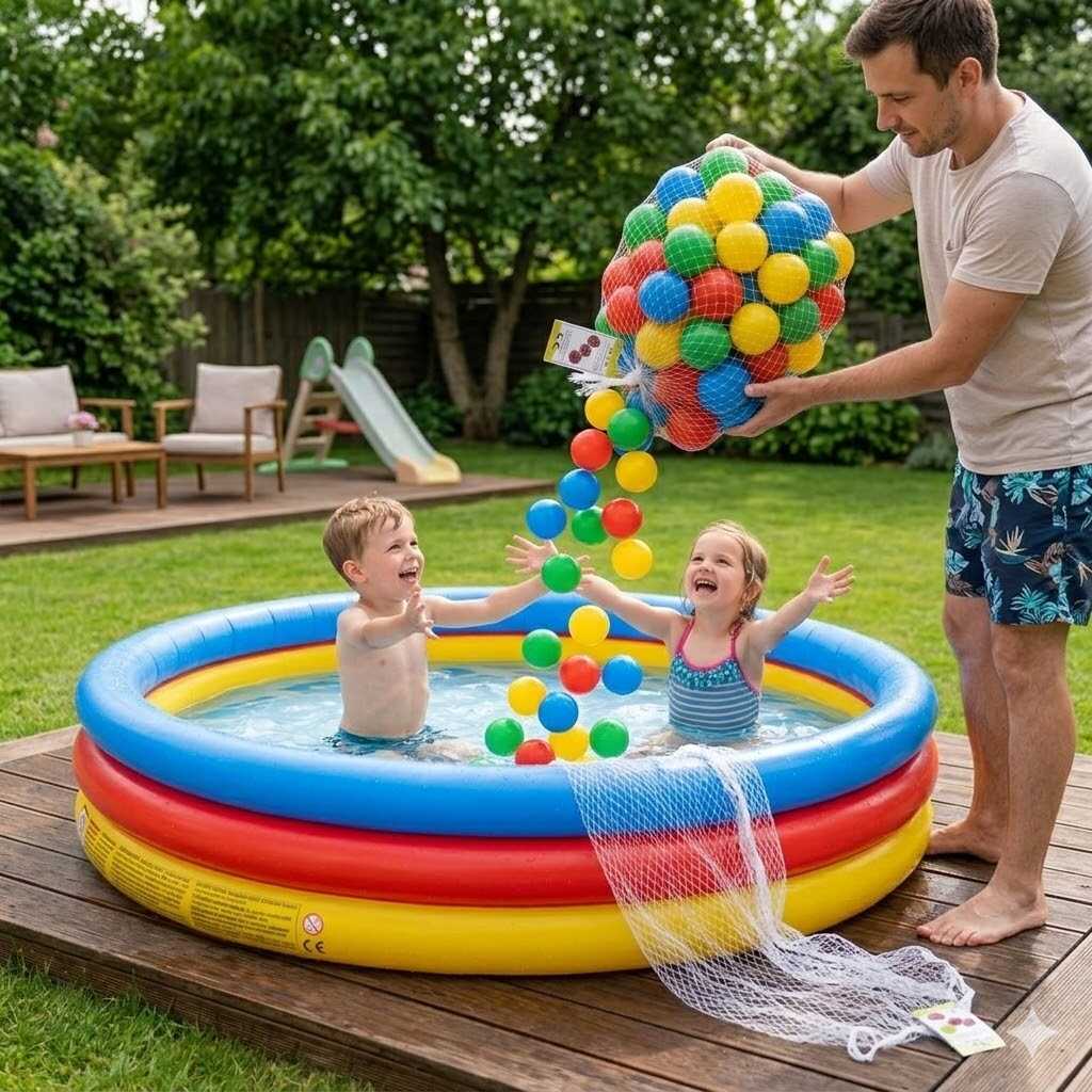 - Játék a medencében: Dobáld a labdákat a vízbe, és élvezd a pancsolást még jobban!