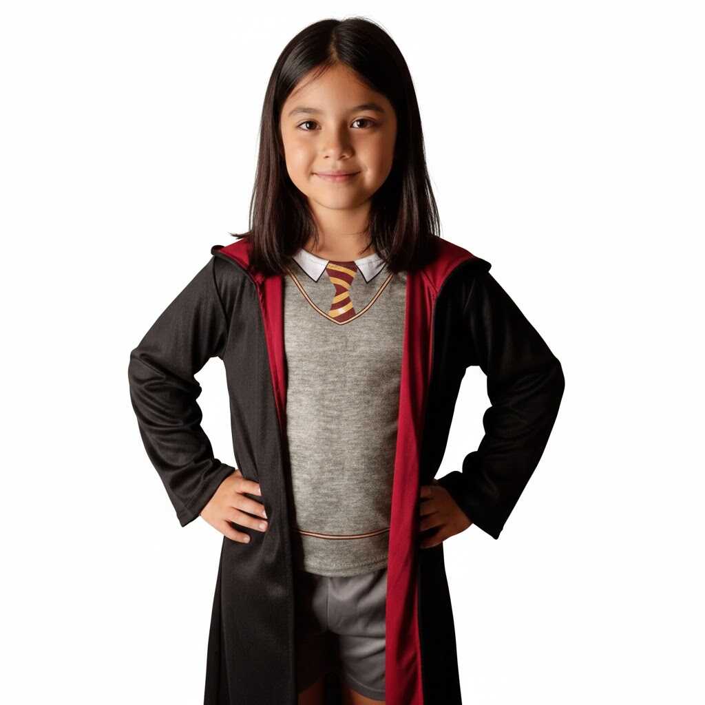 Ez a varázslóiskolák világát idéző jelmez szett kaput nyit a fantázia birodalmába. A tervezés során a klasszikus, filmekből ismert mágikus egyenruha stílusát vettük alapul, hogy minden gyermek átélhesse a varázslat élményét. Legyen szó farsangról, Halloweenről vagy egy tematikus partiról, ez az öltözet az egyik legidőtállóbb és legnépszerűbb választás a kisfiúk és kislányok körében egyaránt.