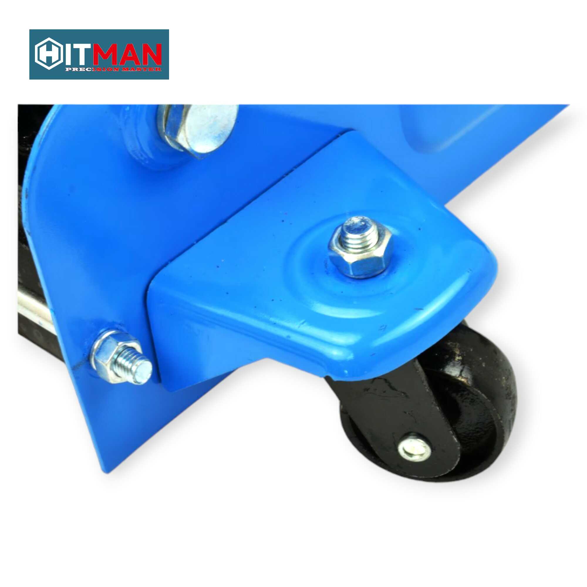 Miért a Hitman 3,5 tonnás modelljét válassza? A 94 cm hosszú, gumírozott, kétrészes emelőkar kiváló erőkart és kényelmes fogást biztosít, csökkentve az emeléshez szükséges fizikai erőfeszítést. Az első bolygókerekek és a hátsó kerekek segítségével az emelő hajszálpontosan pozicionálható az emelési pontok alá. A 120 mm átmérőjű emelőtányér stabil és biztonságos érintkezést garantál a gépjármű alvázával.