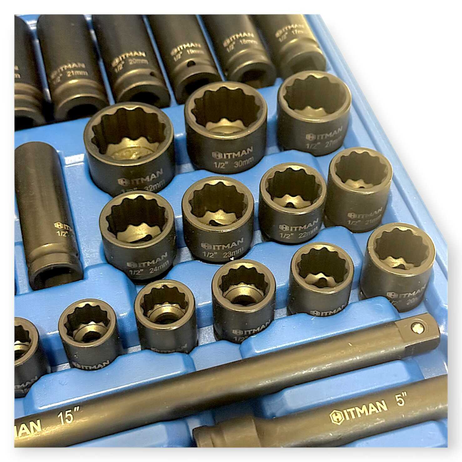 Hitman HA-2581 Erősített 1/2″ 12-Lapfejű Dugókulcs Készlet – Prémium Fekete Kivitel