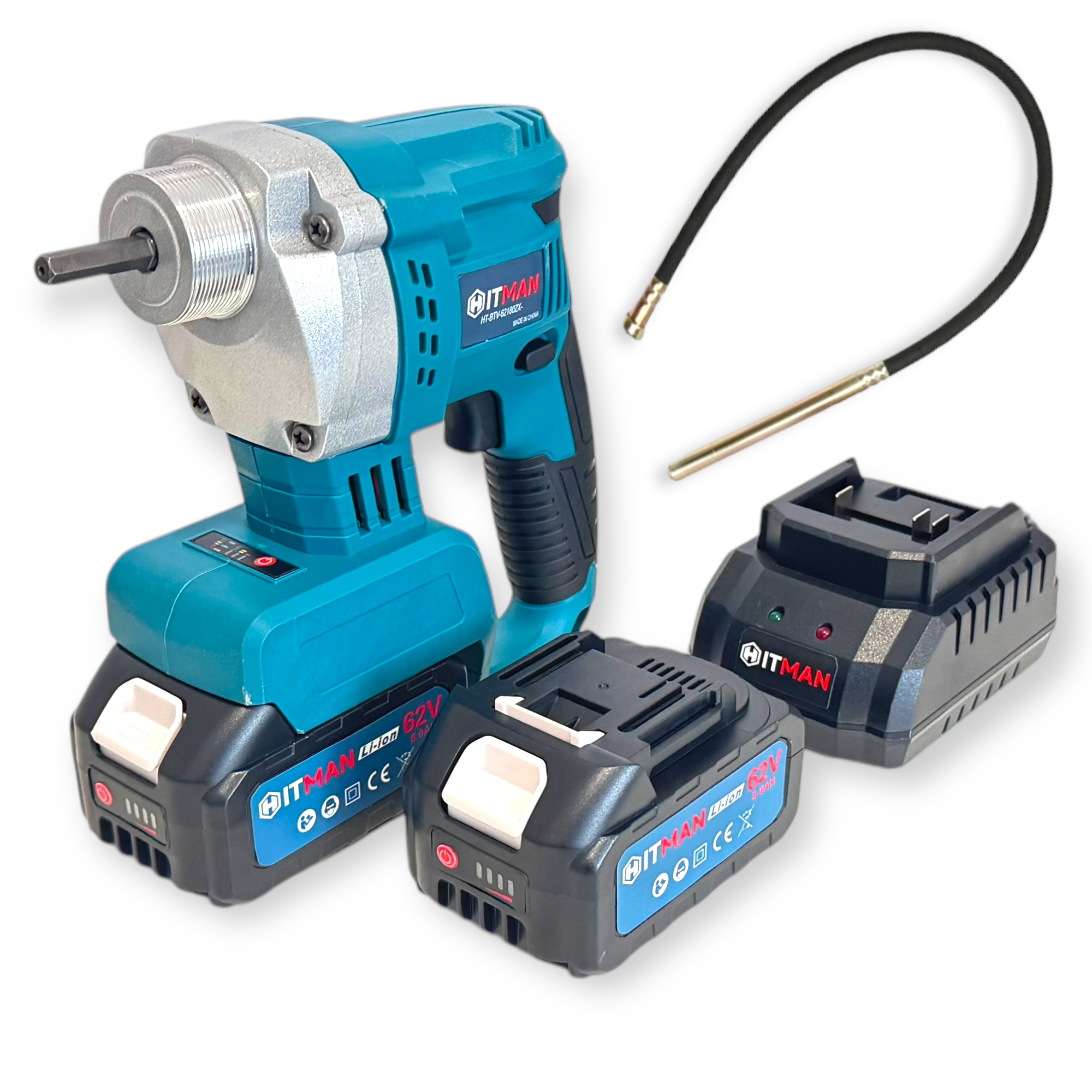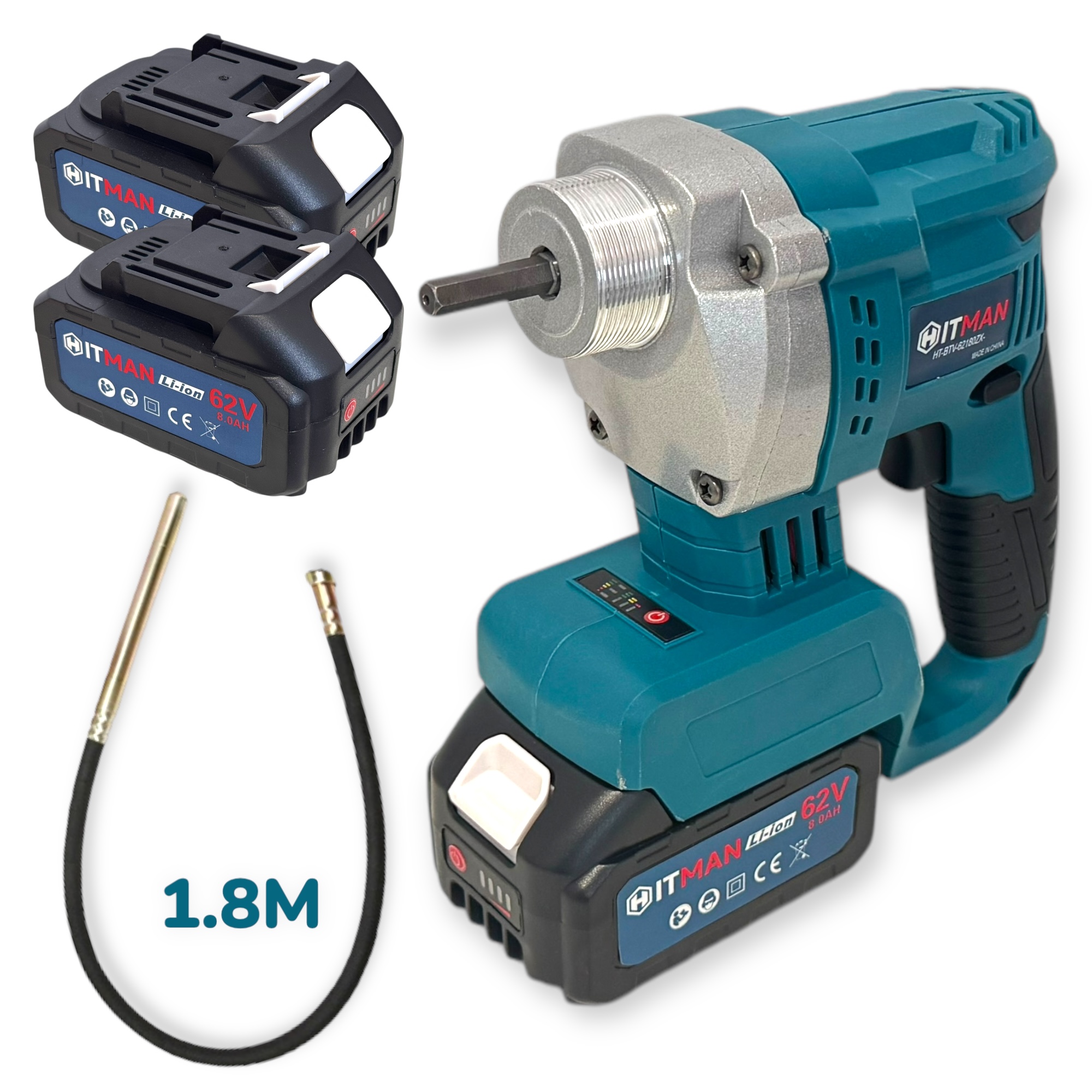 A Hitman HT-BTV-62180ZX egy vezeték nélküli, hordozható betonvibrátor, amely 62V-os akkumulátorral működik, és 1,8 méteres vibrációs fejjel rendelkezik. Ez az eszköz a betonozási munkálatok során a beton hatékony tömörítésére szolgál, biztosítva a sima és tartós felületet.