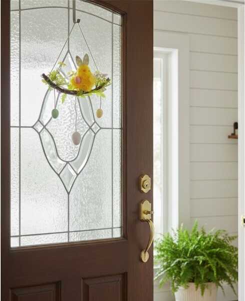 Ez a látványos dekoráció hosszú natúr függesztővel rendelkezik, így tökéletes választás ablakok, bejárati ajtók vagy akár a nappali központi részének díszítésére. A kompozíciót élethű művirágok, zöld levelek és a hinta aljáról lelógó apró dekorációs tojások teszik teljessé, amelyek minden mozdulatra játékosan megreccsennek, bájt kölcsönözve a környezetnek.