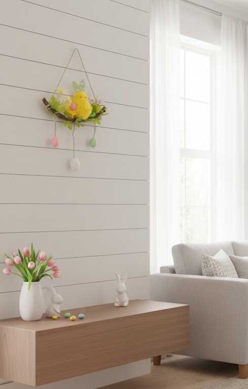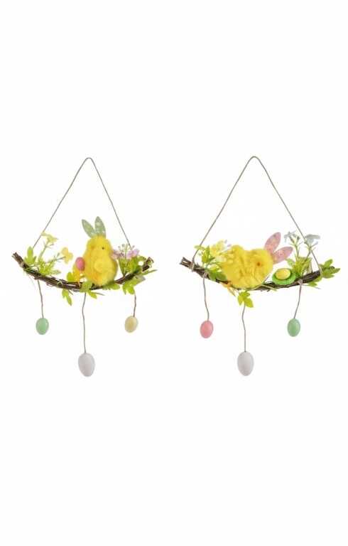 Varázsoljon tündéri és élettel teli tavaszi hangulatot otthonába ezzel a különleges, kézműves hatású függődísszel. A természetes faág hintán pihenő, selymesen puha sárga kiscsube és a körülötte lengedező pasztell tojások a tavaszi szél könnyedségét és az ünnep felhőtlen örömét hozzák el minden helyiségbe.