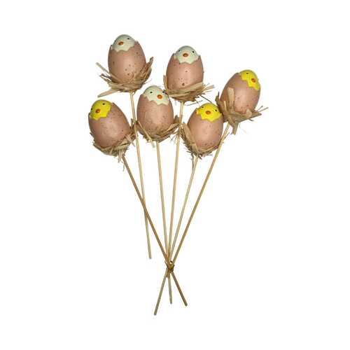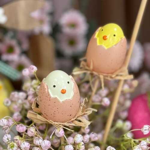 A hosszú pálcikás kialakításnak köszönhetően ezek a díszek rendkívül sokoldalúan használhatók: könnyedén beszúrhatók tavaszi virágcserepekbe, asztali kompozíciókba vagy akár az ünnepi teríték kiegészítőiként is szolgálhatnak. A természetes hatású fészek és a 19 cm-es teljes hosszúság lehetővé teszi, hogy látványos és kreatív húsvéti életképeket alkosson velük.