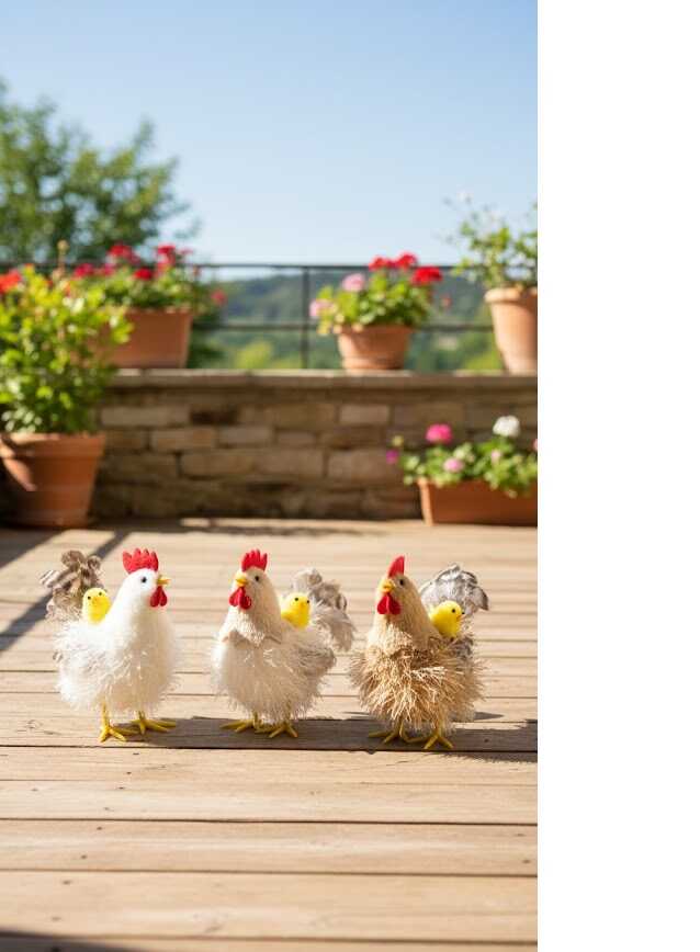 * Anyaga: Természetes hatású tollazat, flokkolt mini csibe és műanyag kiegészítők