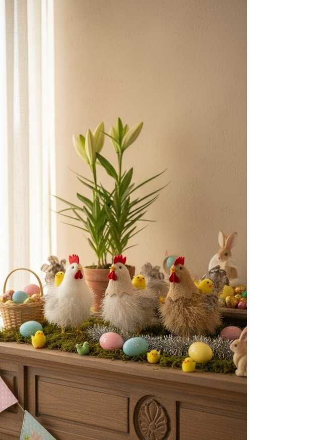 Ez a 17 cm-es figura méretéből adódóan hangsúlyos eleme lehet bármilyen húsvéti kompozíciónak. Kiválóan mutat rusztikus stílusú asztaldíszekben, szalmafészekbe helyezve vagy polcok tavaszi dekorációjaként. Az élethű tollazat és a természetes színek miatt remekül illeszkedik a natúr hangulatú enteriőrökbe.