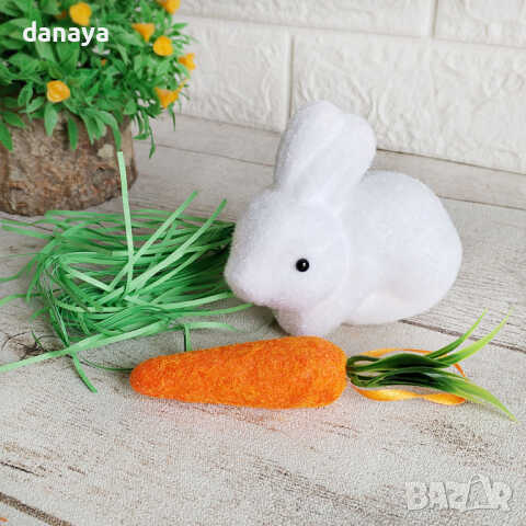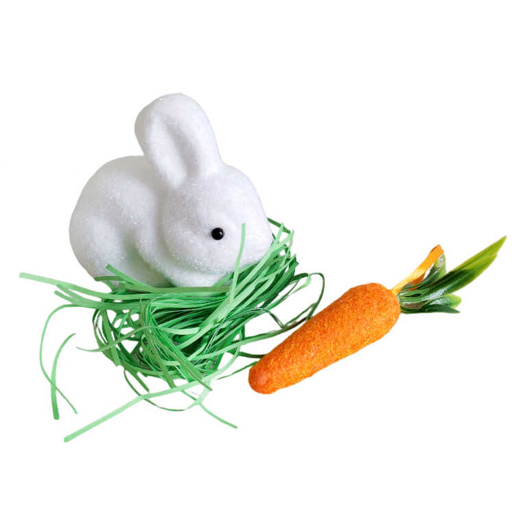 Csempéssze be a tavasz legkedvesebb pillanatait otthonába ezzel az imádnivaló húsvéti dekorációs szettel. A puha, hófehér nyuszi és az élethű sárgarépa kettőse az ünnepi készülődés és a természet újjászületésének örömét hozza el, bárhová is helyezi el a lakásban.
