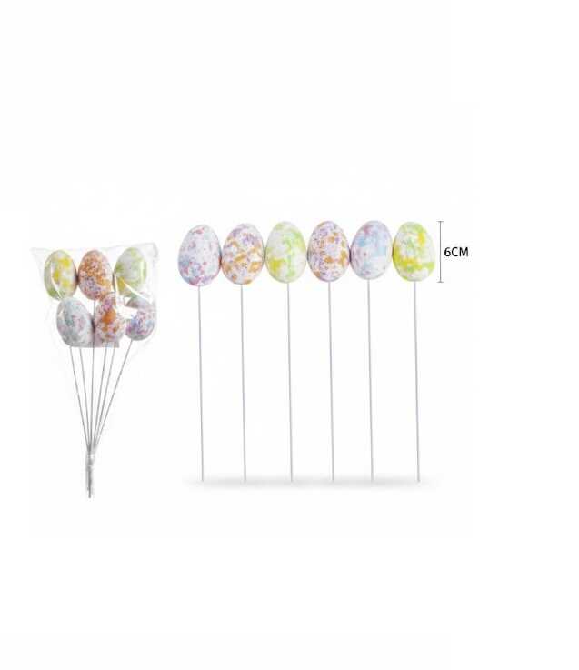* 6 db Mintás dekorációs tojás pálcikán